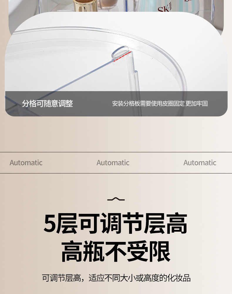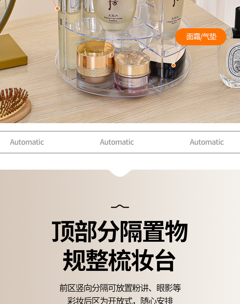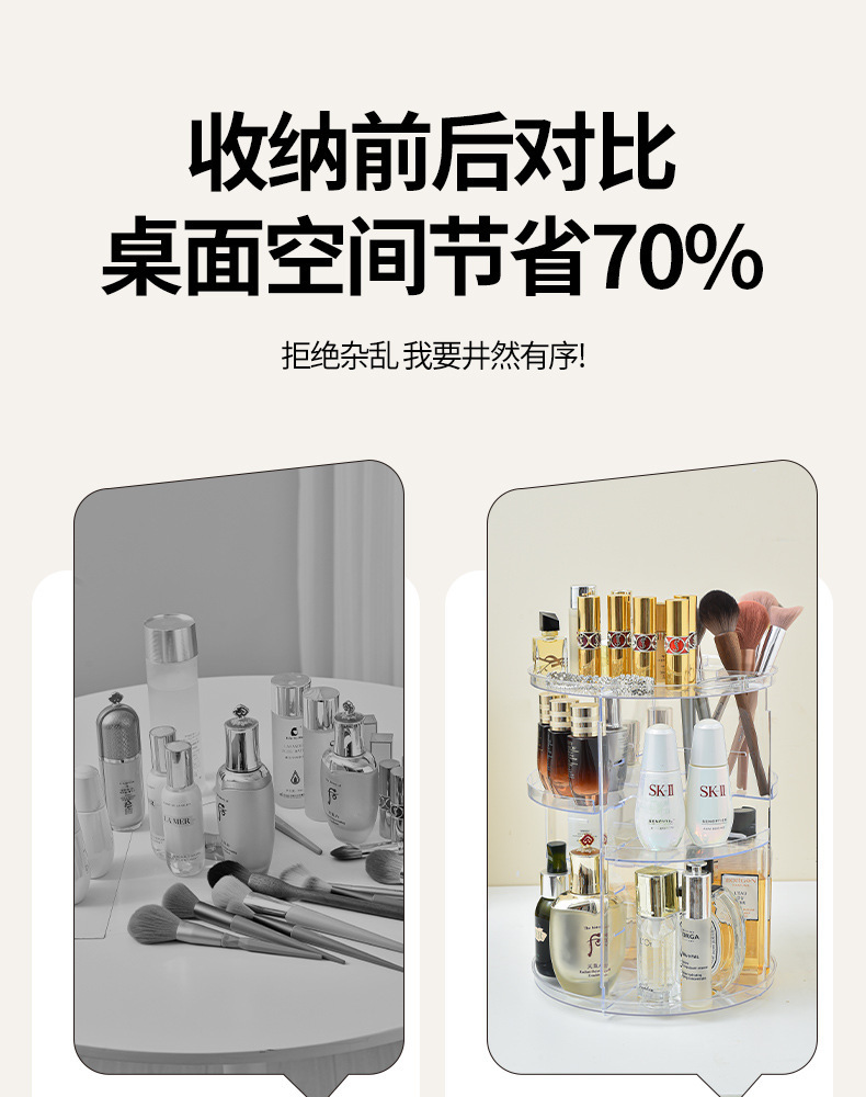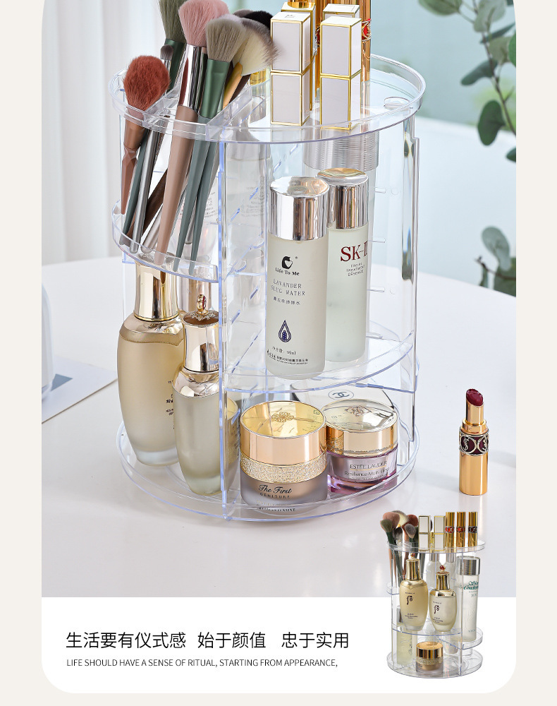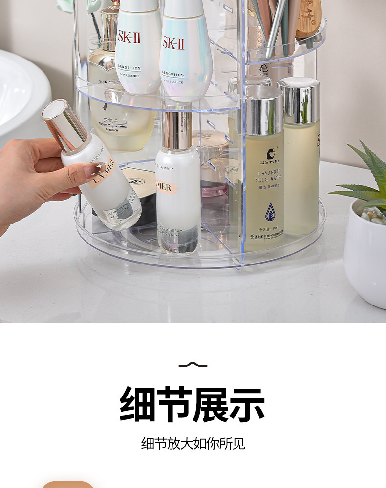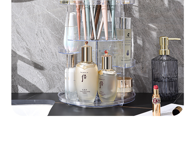 跨境360旋转化妆品透明防尘收纳架卫生间桌面整理置物架高化妆台