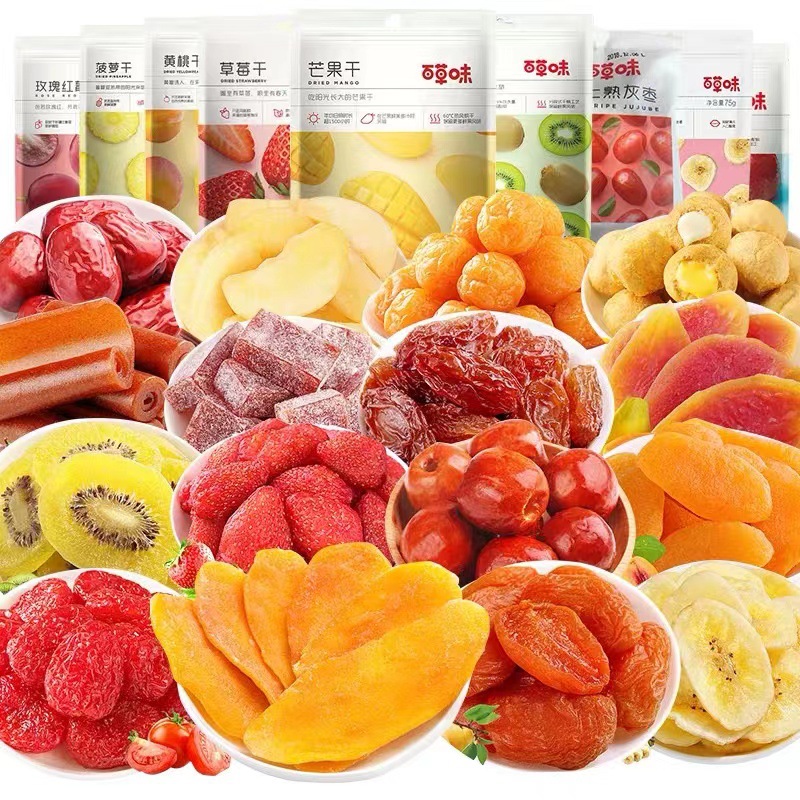 12月産の百草味ドライマンゴー120g、甘酸っぱいフルーツジャム、紅杏、黄桃、イチゴ、パイナップル、キウイ、レモンのドライフルーツ