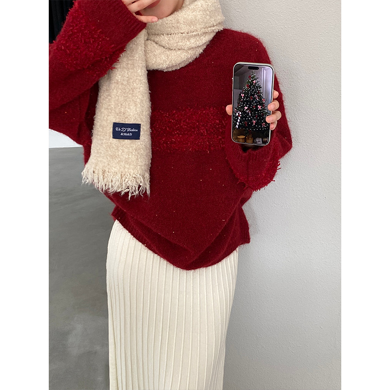 江左 恭喜发财 韩系软糯圆领毛衣女冬25新款宽松显瘦加厚上衣8029