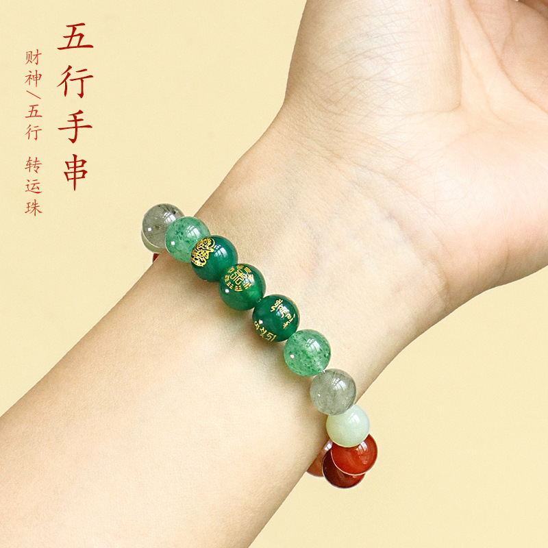 五行手串男女天然水晶手串黄財神招財多宝輸送送友プレゼント双属性手串