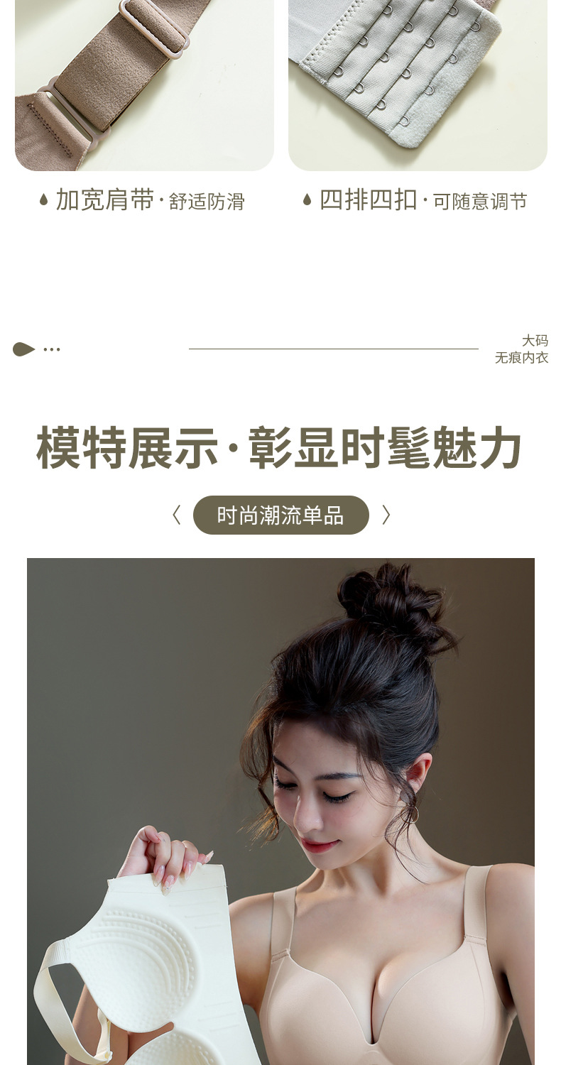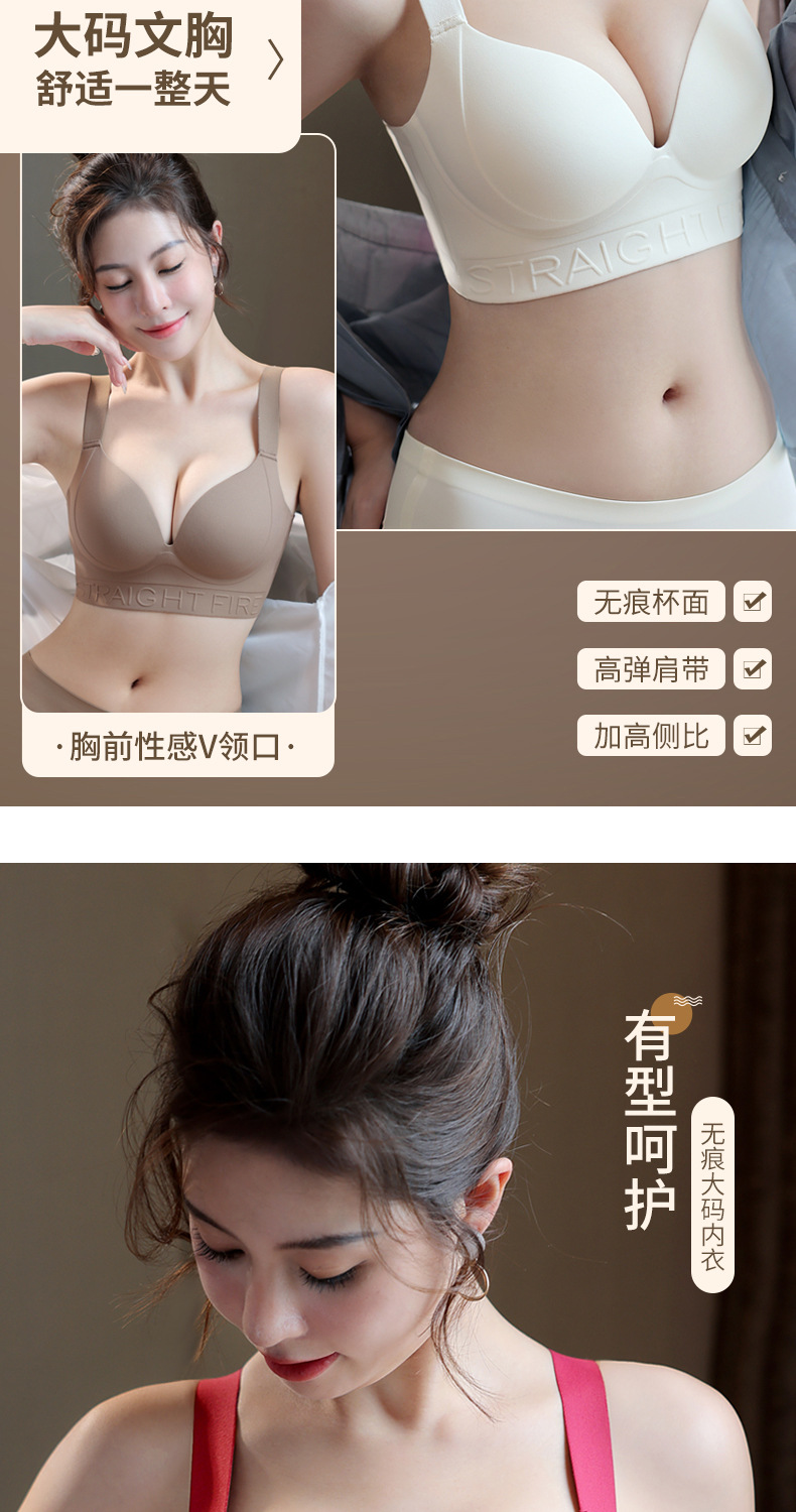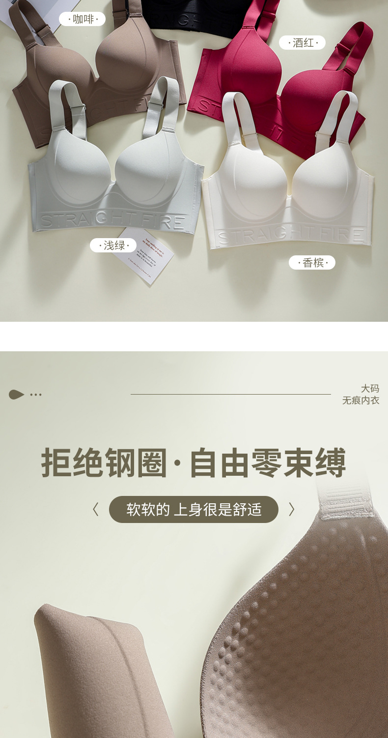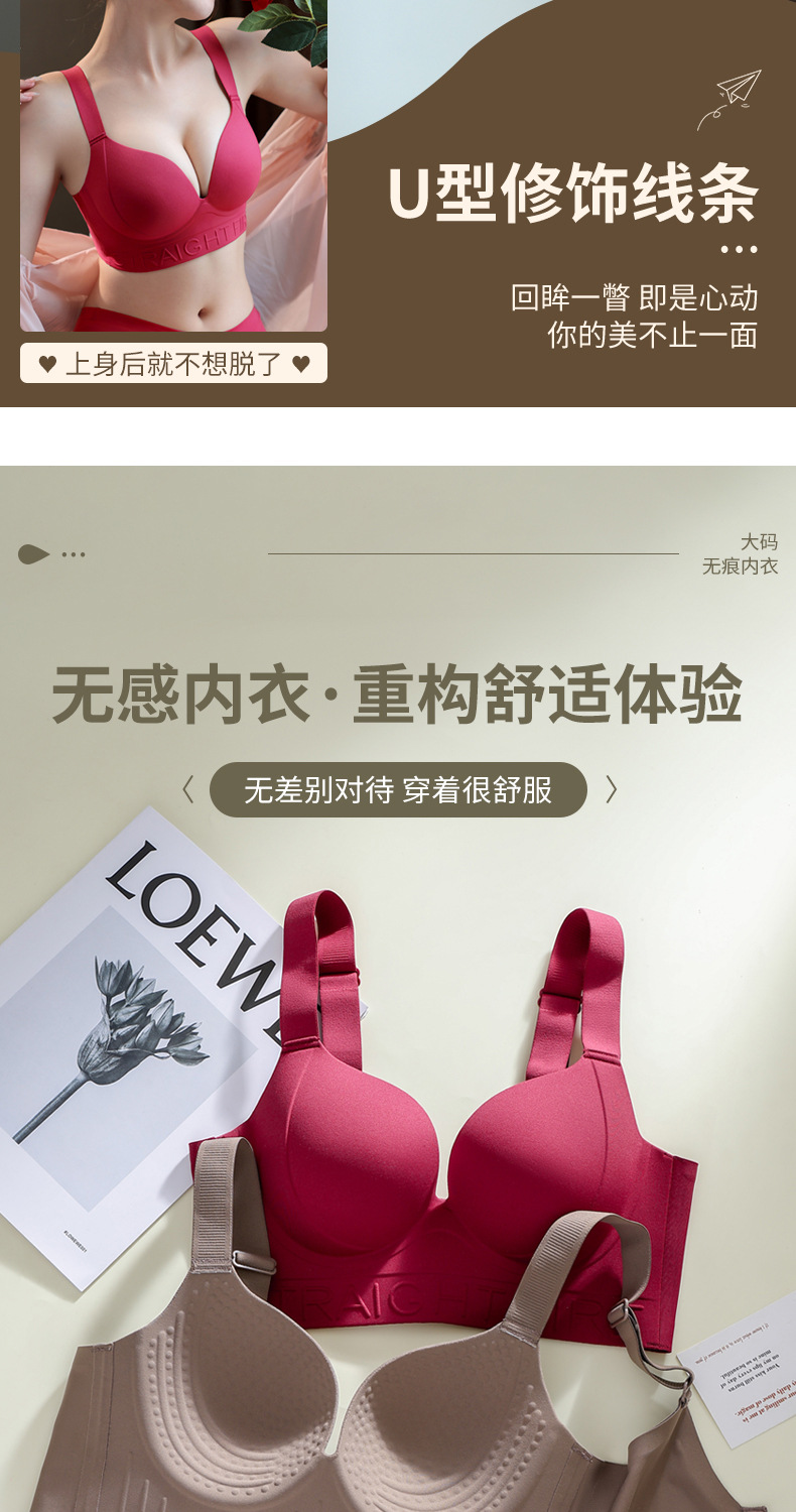 一片式无痕胖MM大码内衣红色直播代发大胸显小粉底液文胸外贸跨境