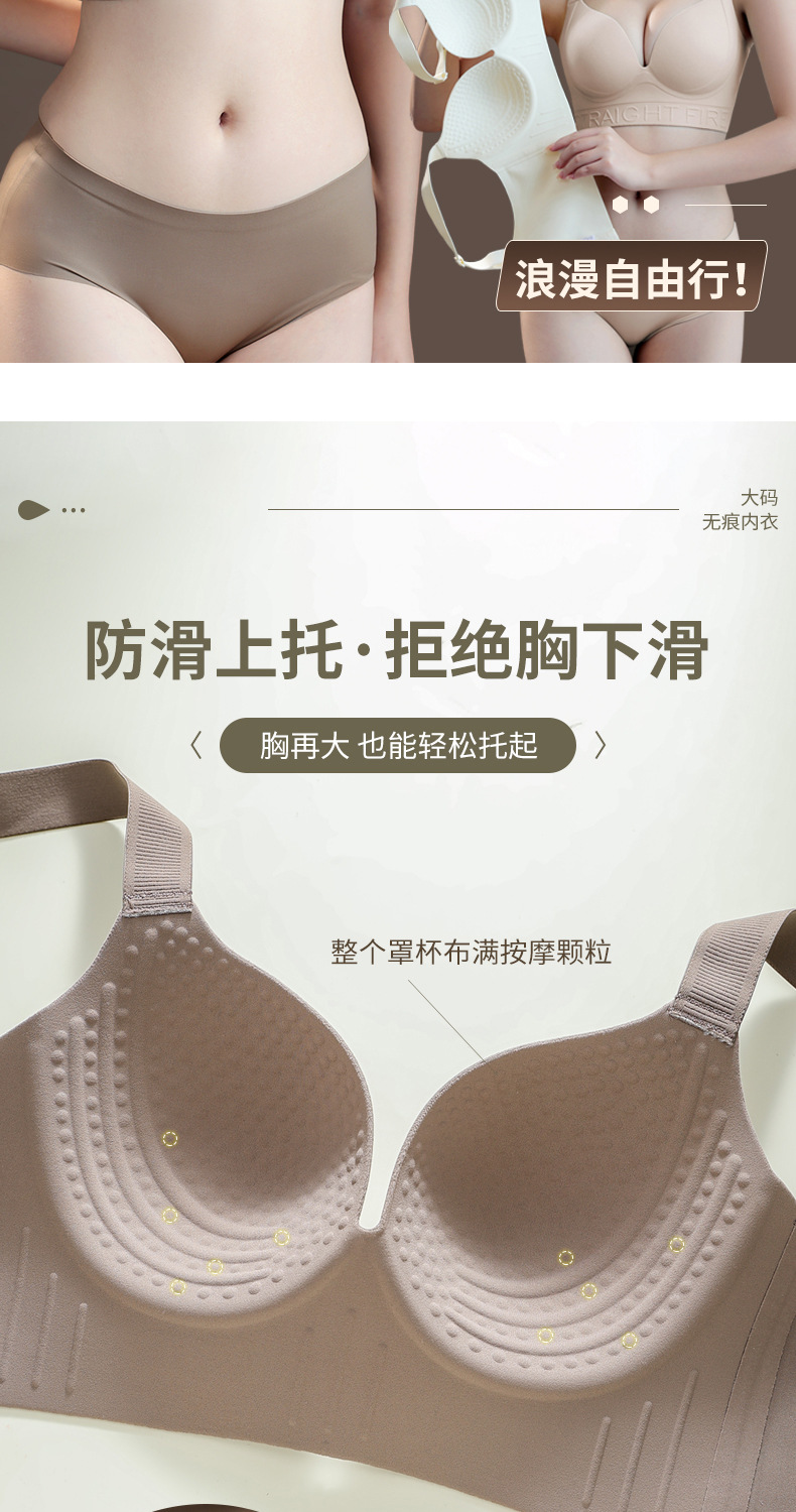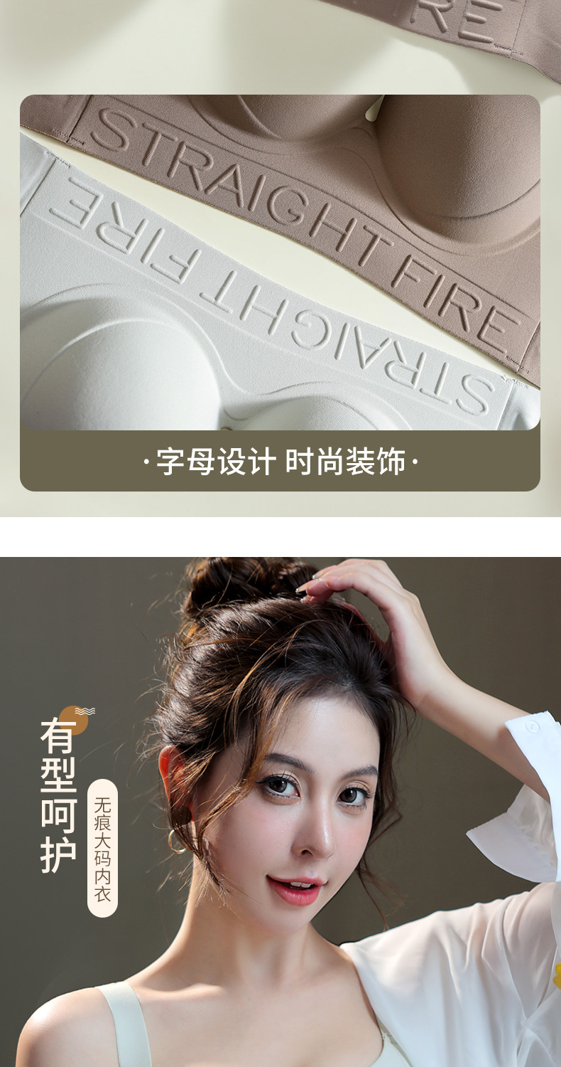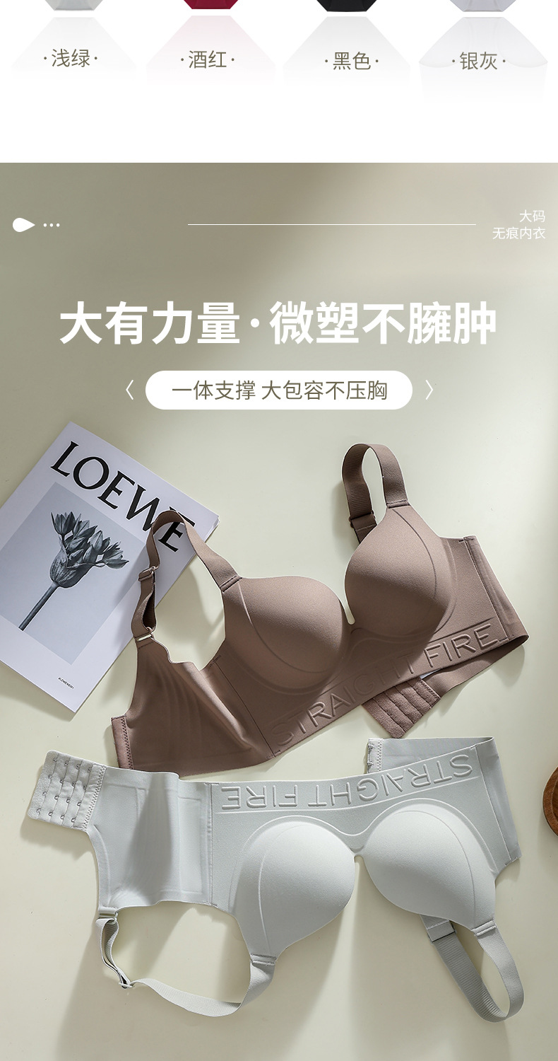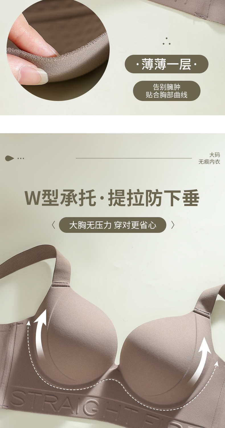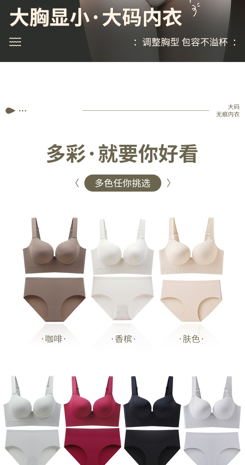 一片式无痕胖MM大码内衣红色直播代发大胸显小粉底液文胸外贸跨境