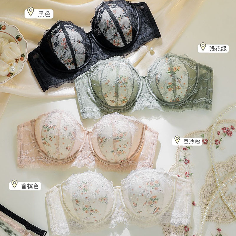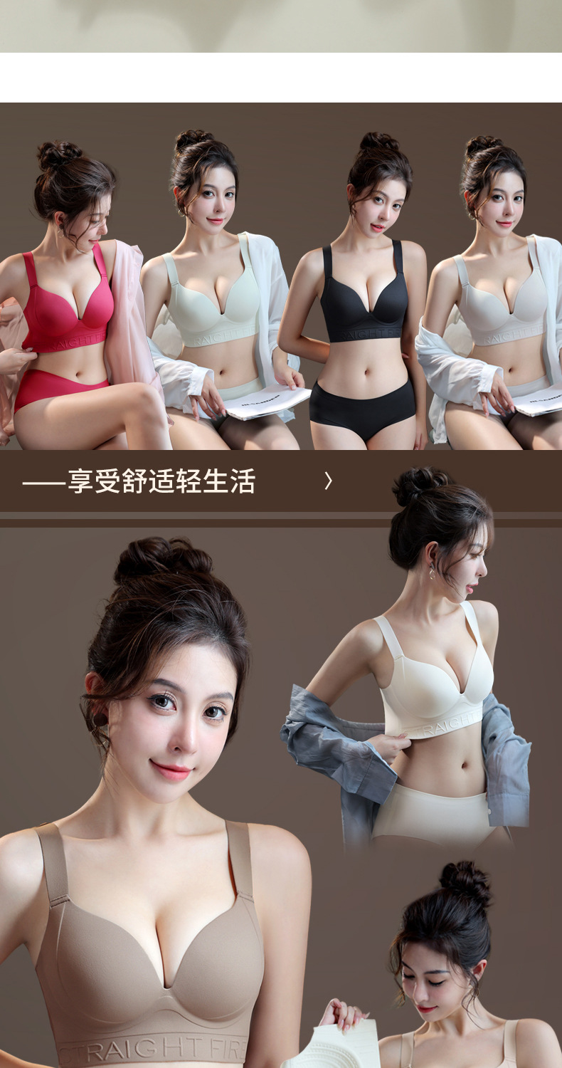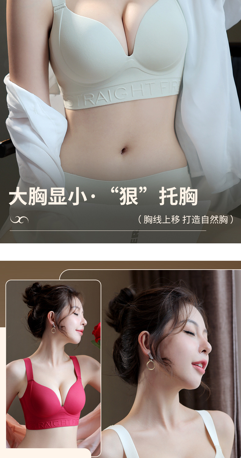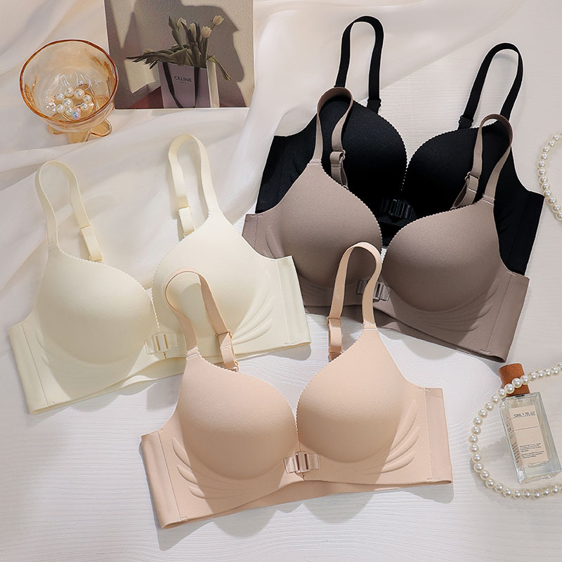 2024純欲風前ボタン光沢面無痕下着生放送代発小胸集約快適文ブラジャー対外貿易クロスボーダー