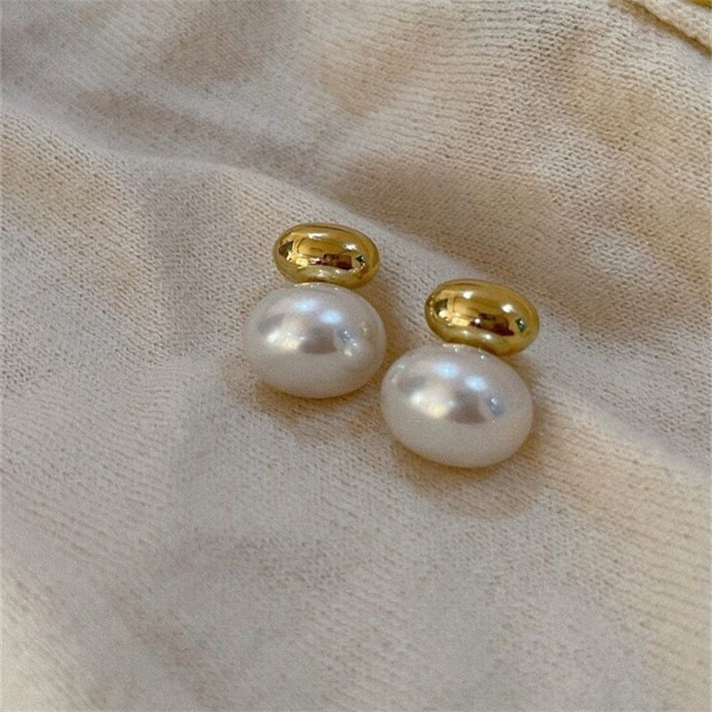925シルバーニードル フレンチレトロデザイン オーバルシェルパール 銅製本金メッキイヤリング 香港風イヤリング 女性用 上品