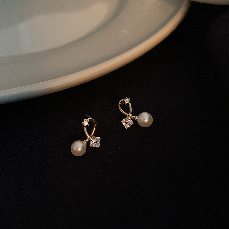 環境に優しい日本と韓国の絶妙なダイヤモンドがいっぱいの甘いリボンパールイヤリング、女性用、ファッショナブルでシンプル、コンパクトで多用途なイヤリングとイヤリング