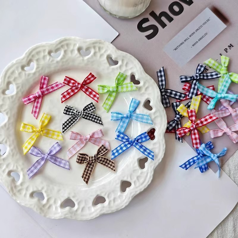 格子千鳥格小蝶結び飾り6mm幅完成品少女心礼品包装補助材料手作りDIY材料