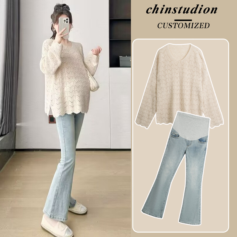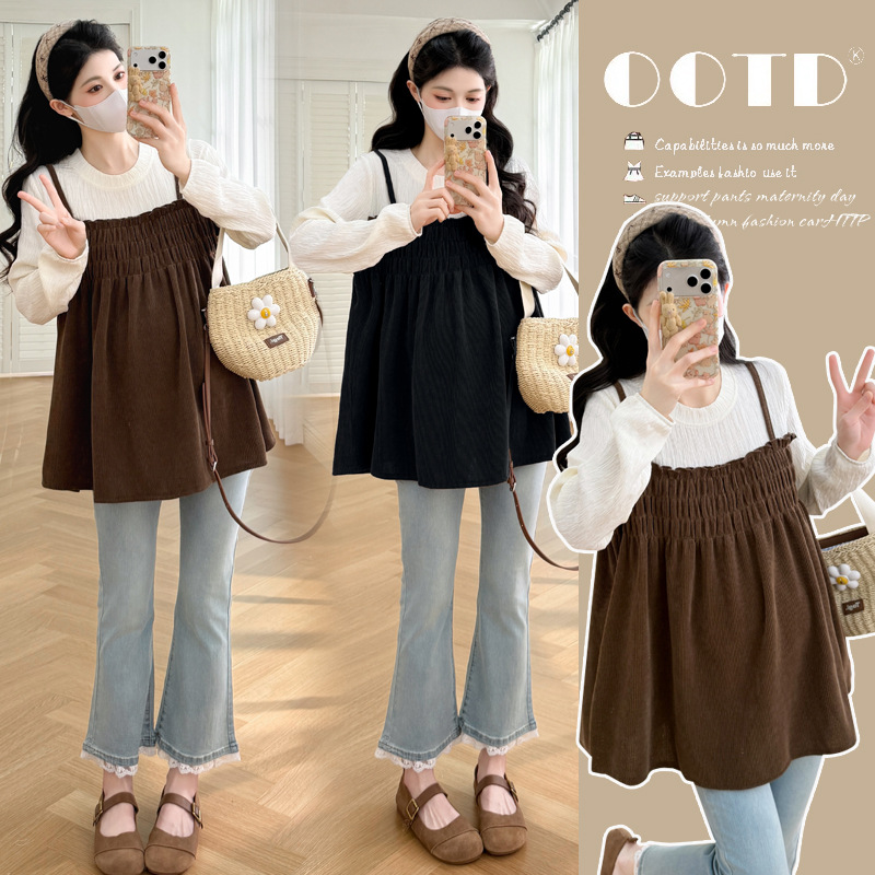 妊婦服春服セットファッションタイプの妊婦上着の中のロングタイプの洋風ゆったり長袖