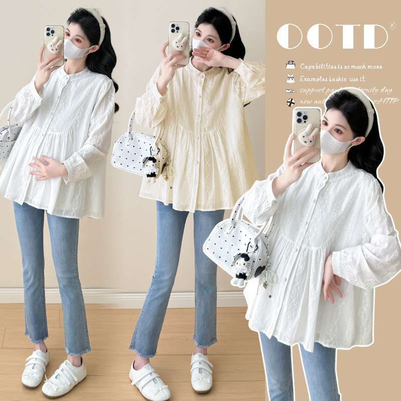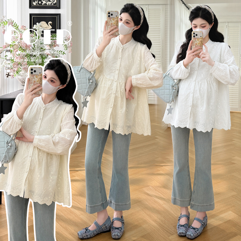2026新款春季孕妇装刺绣拼接孕妇长袖衬衫