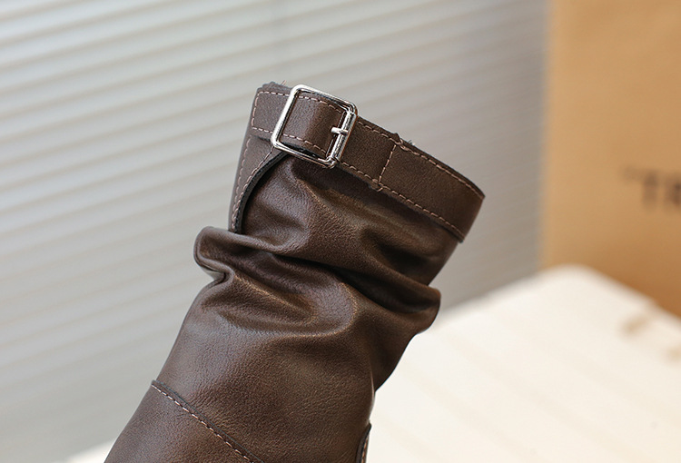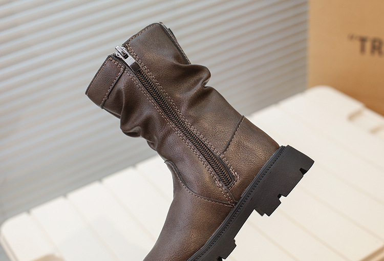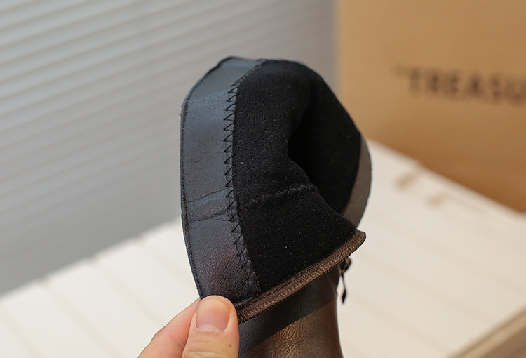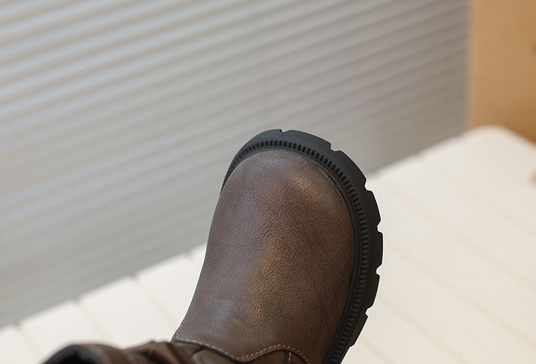 厚底ハイカットブーツ 女の子用 2025秋冬新作 おしゃれ メイラード風 レトロ風 パイルブーツ 裏起毛ショートブーツ