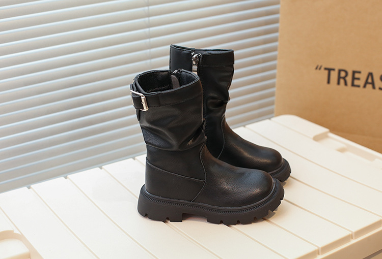 酷飒皮带扣英伦风马丁靴2025秋冬季新款韩版女童加绒中筒靴骑士靴