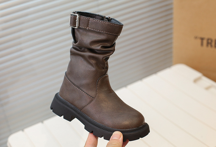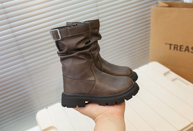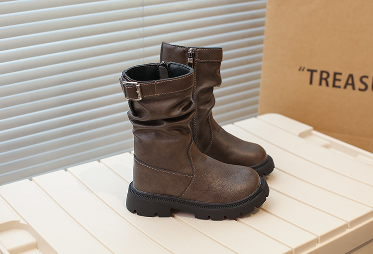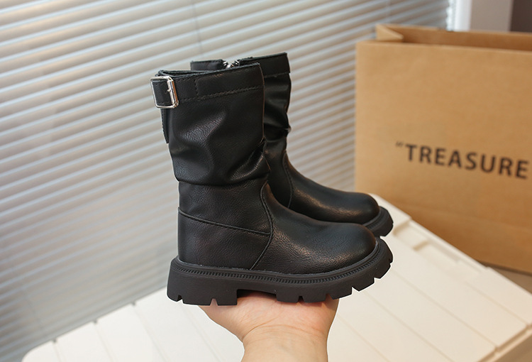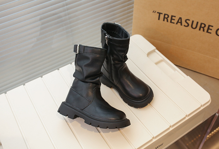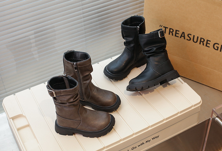女の子用ブーツ 2025年秋新作 メタルバックル付き子供用ロングブーツ バックジッパー付き子供用マーティンブーツ 子供用ブーツ