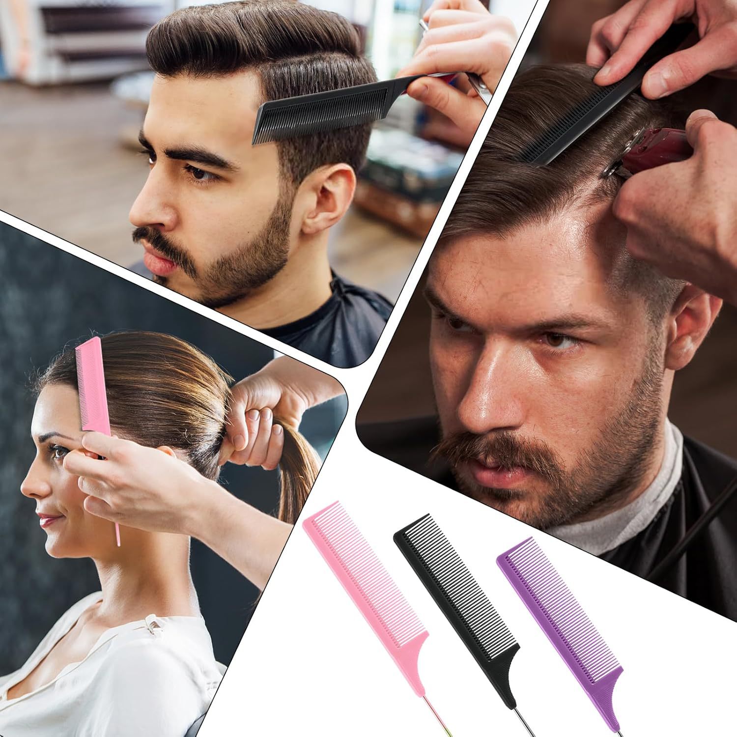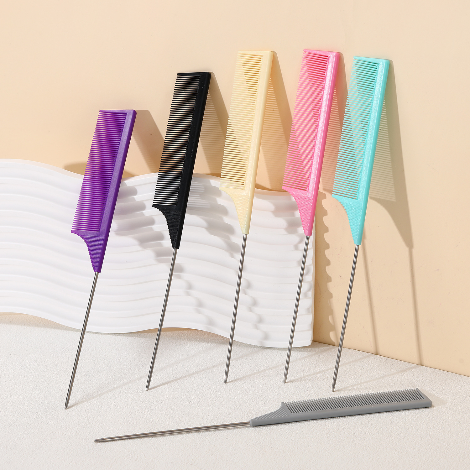 先のとがったテールコーム、スチールニードルコーム、髪染め、ヘアスタイリングコーム、ヘアピッキングコーム、ヘアパーティショナルラットテールコームのクロスボーダー専用