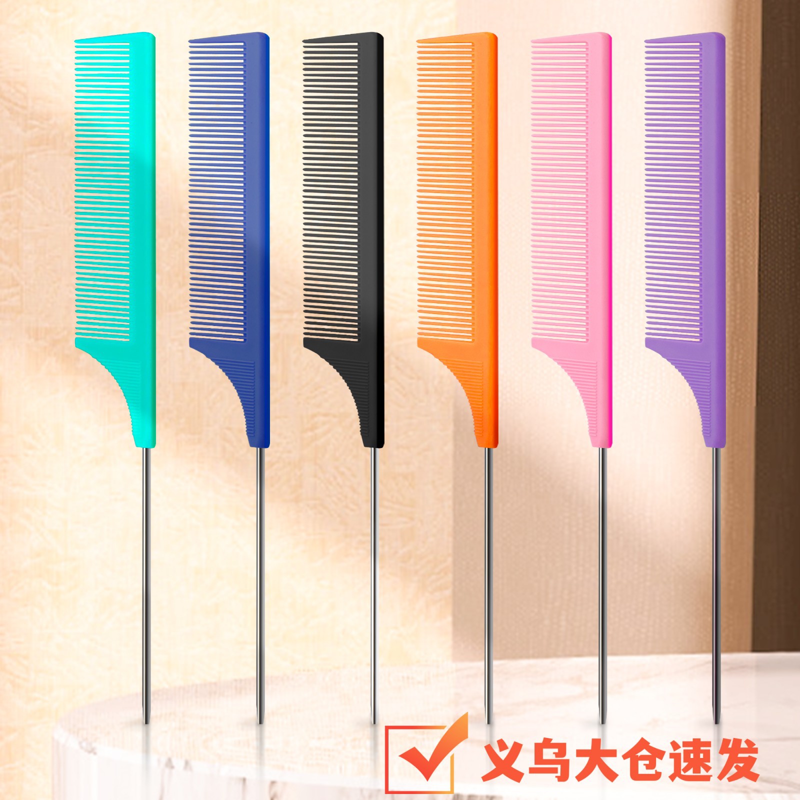 跨境现货烫染发化妆梳子不锈钢尖尾梳子防滑耐高温美发梳子尖尾梳
