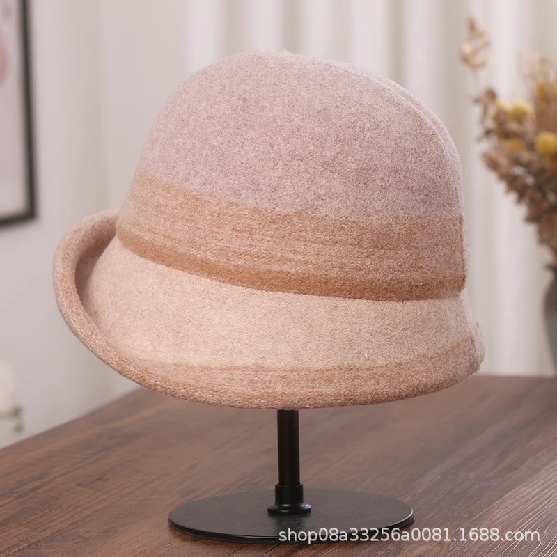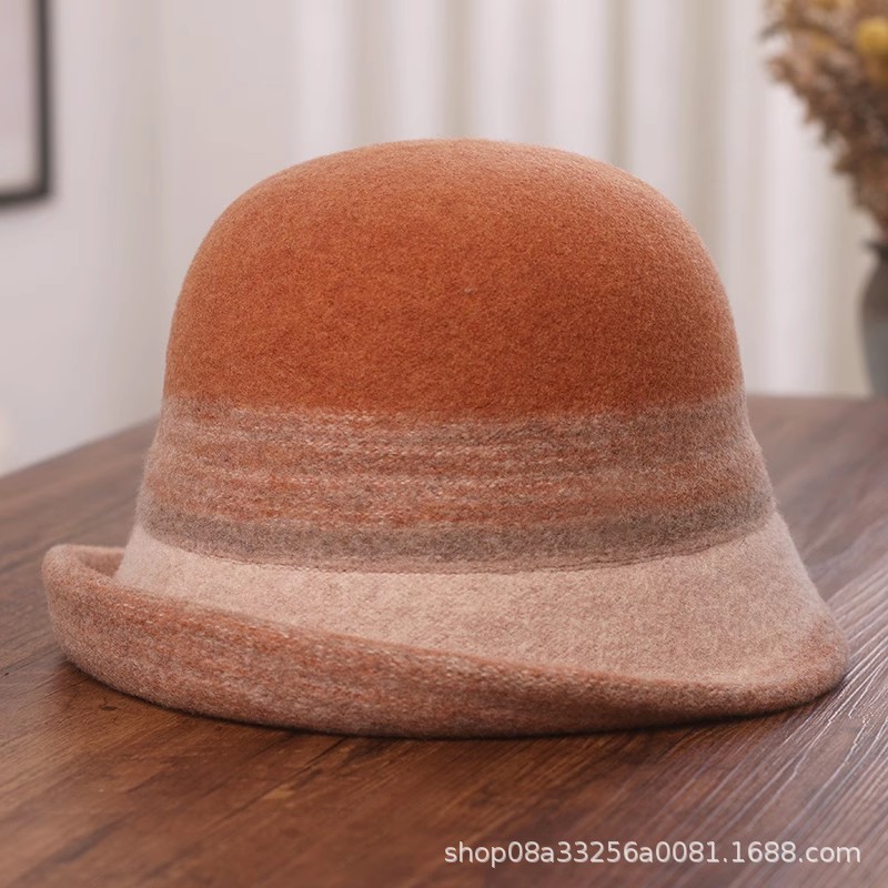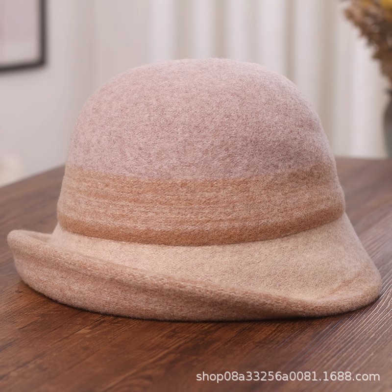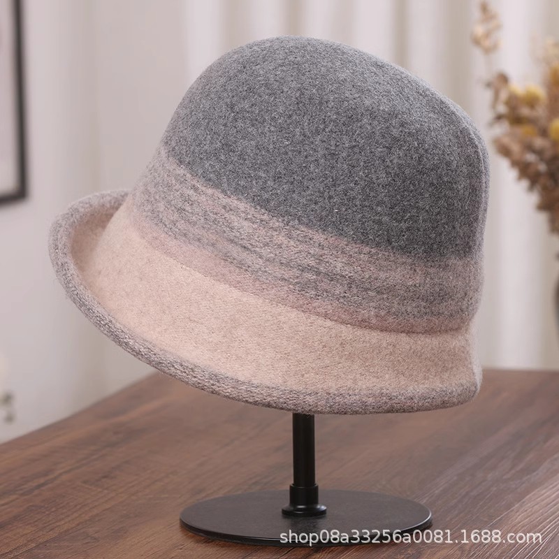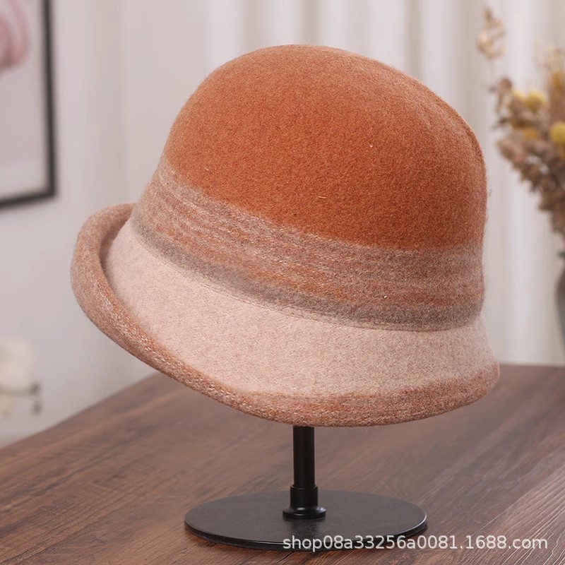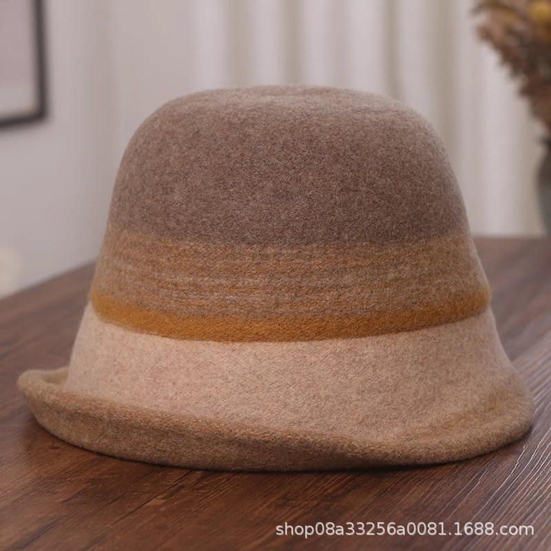 秋冬新款拼色羊毛渔夫帽女遮阳保暖盆帽高级感日系卷边显脸小礼帽