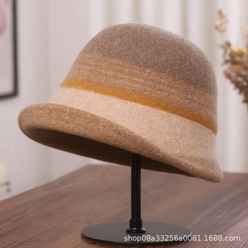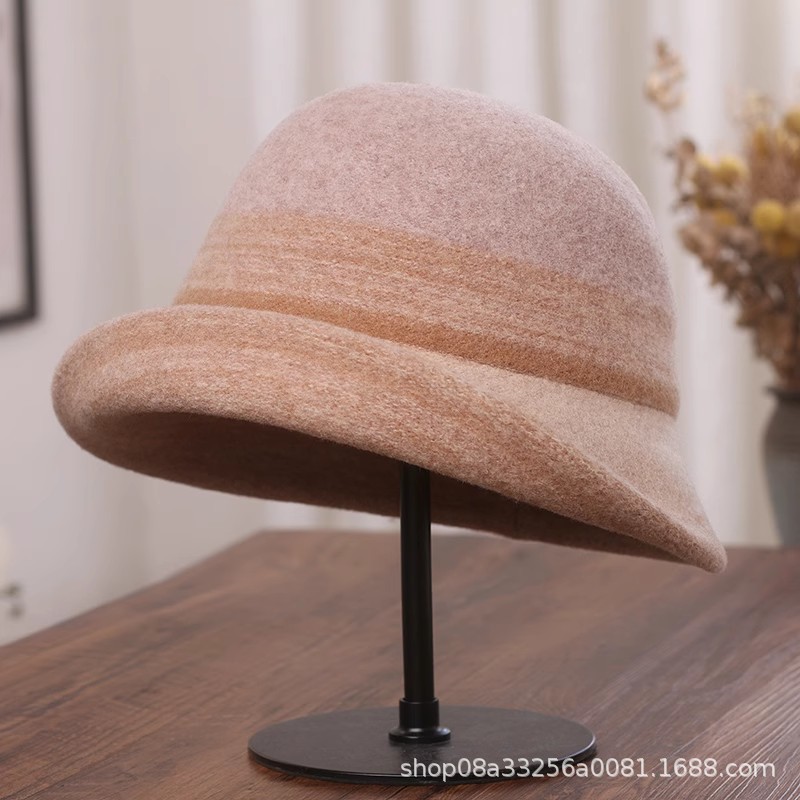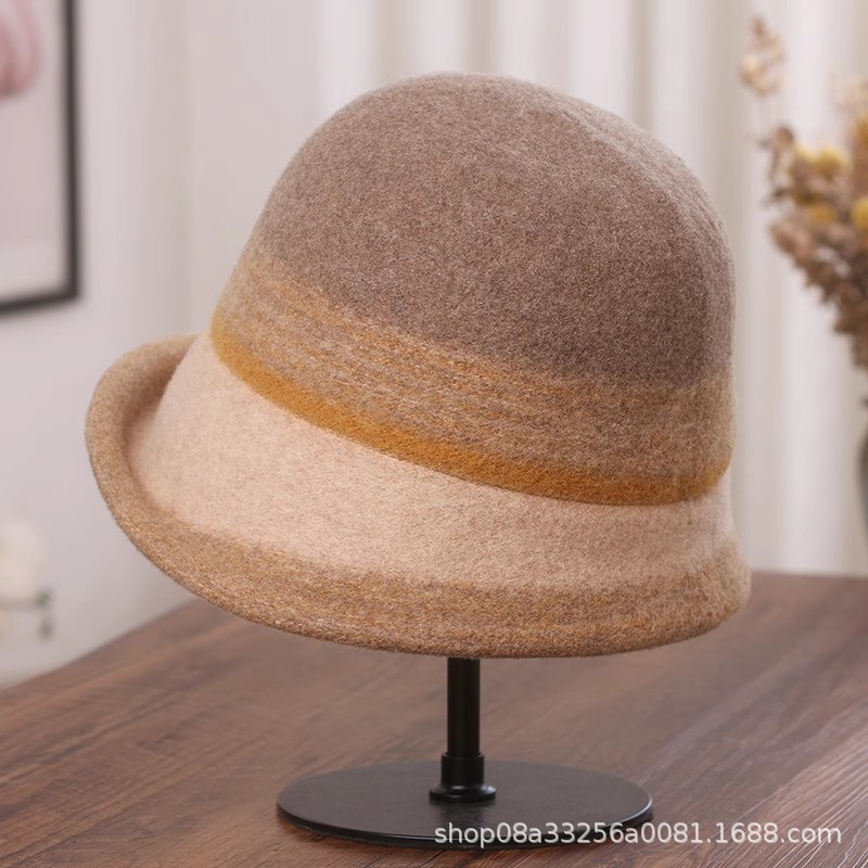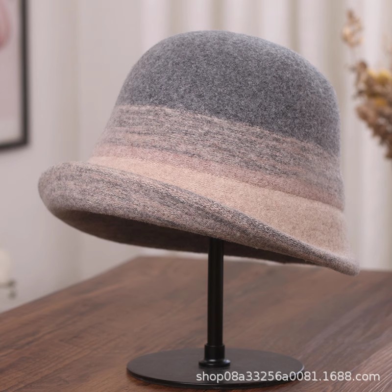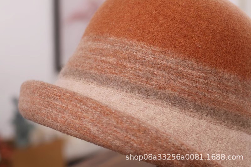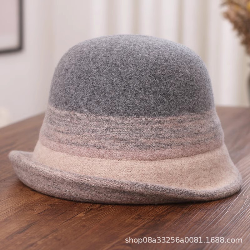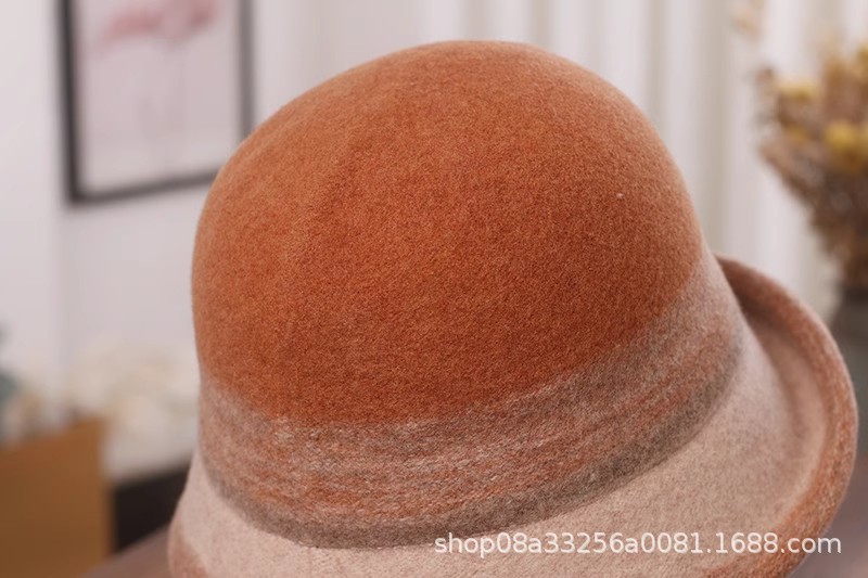 秋冬新款拼色羊毛渔夫帽女遮阳保暖盆帽高级感日系卷边显脸小礼帽