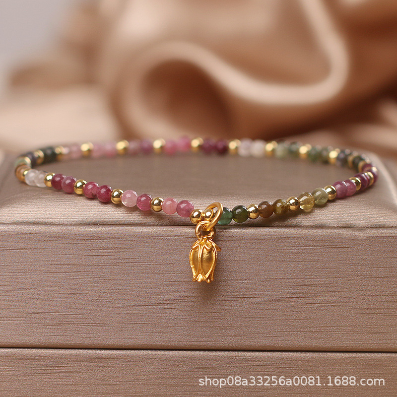 Ins小衆設計天然碧璽数珠脚鎖女夏軽贅沢セクシー足鎖ファッション個性足首鎖