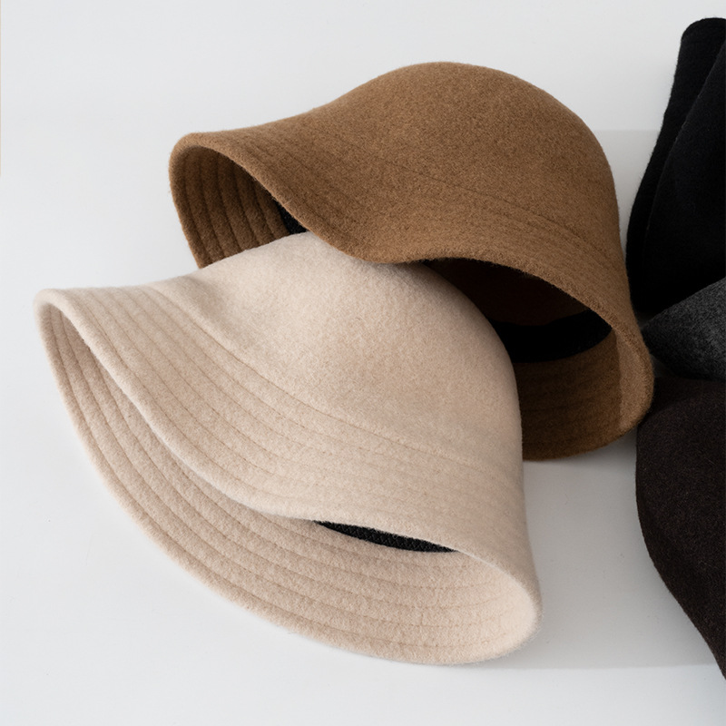 ウール素材のフィッシャーマンハット、女性用、秋冬、折りたたみ可能、多用途、小顔効果、短いつば、保温性のあるバケットハット