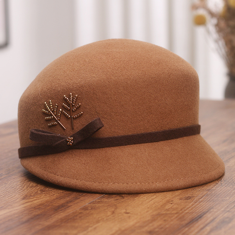 秋冬百搭羊毛帽子女气质优雅小香风盆帽法式毛呢蝴蝶结复古鸭舌帽