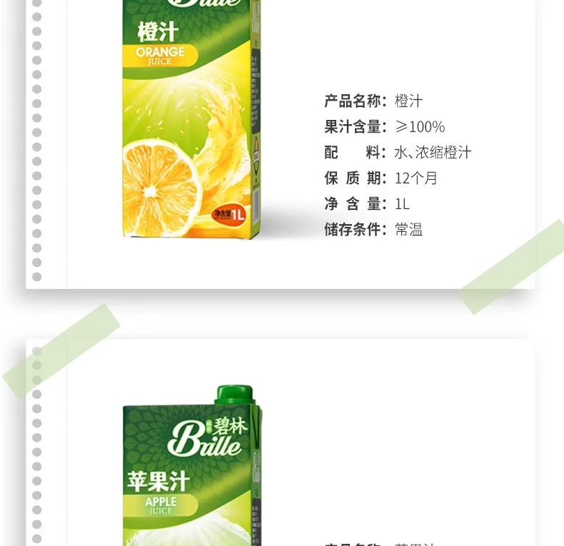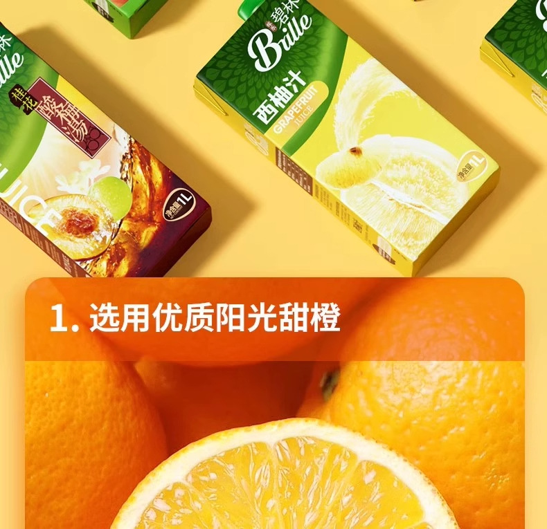 佳乐碧林1L入りオレンジジュース、桃、リンゴ、ブドウ、スイートオレンジ、金柑、グレープフルーツなどのフレーバーの果汁成分