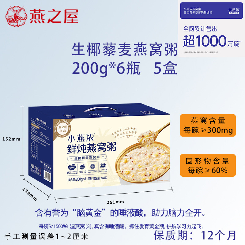 燕子の巣 小燕濃厚燕の巣粥 生ココナッツと五赤 252g 200g 6杯分 妊婦向け朝食用インスタント粥 送料無料