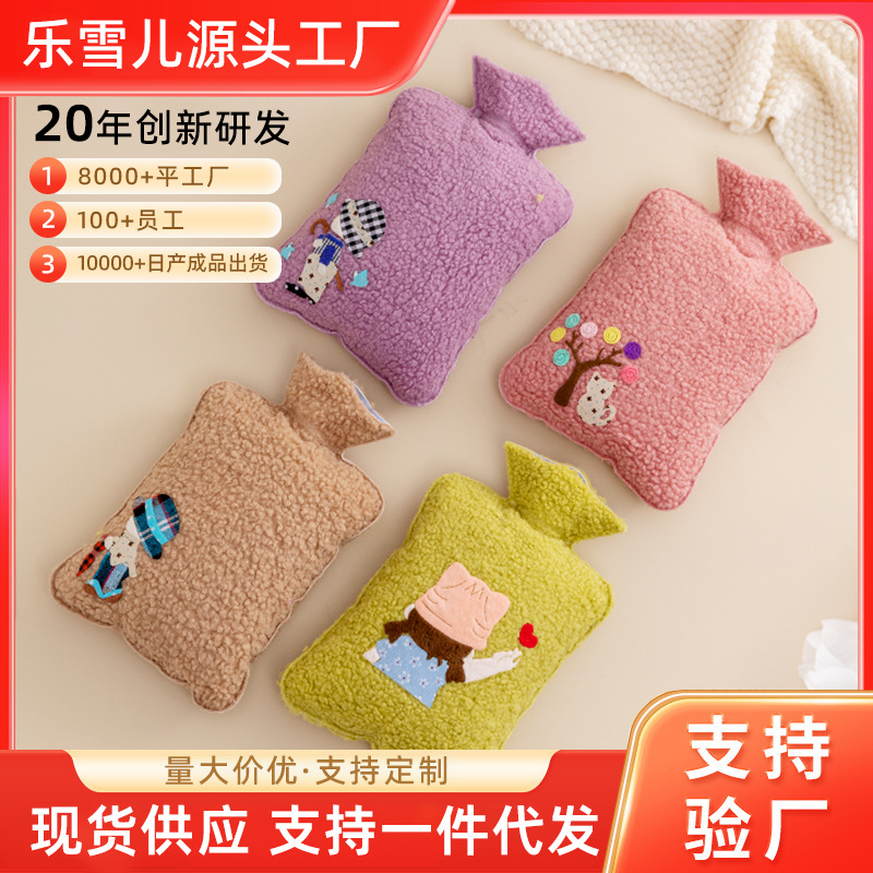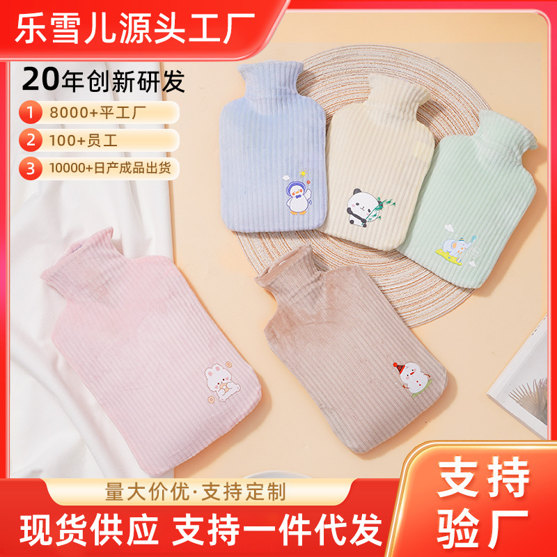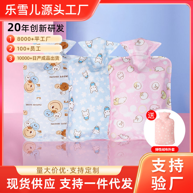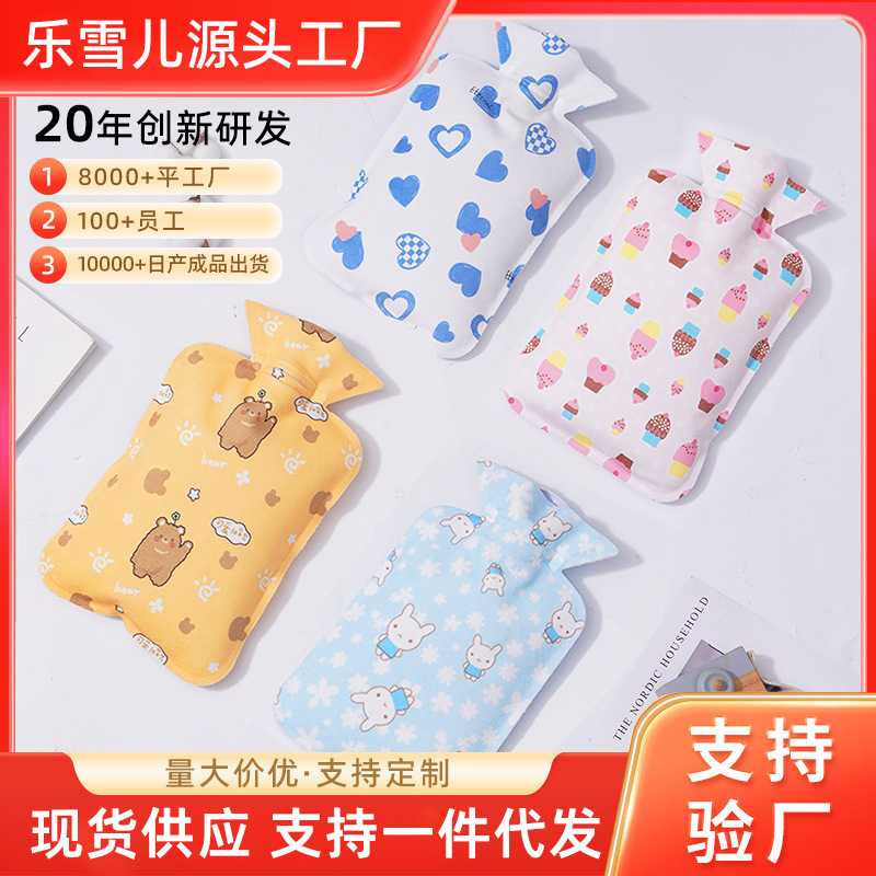 楽雪児湯たんぽ注水家庭用防爆ベルベットカバープリント灌水式暖手宝pvc湯たんぽ卸売り