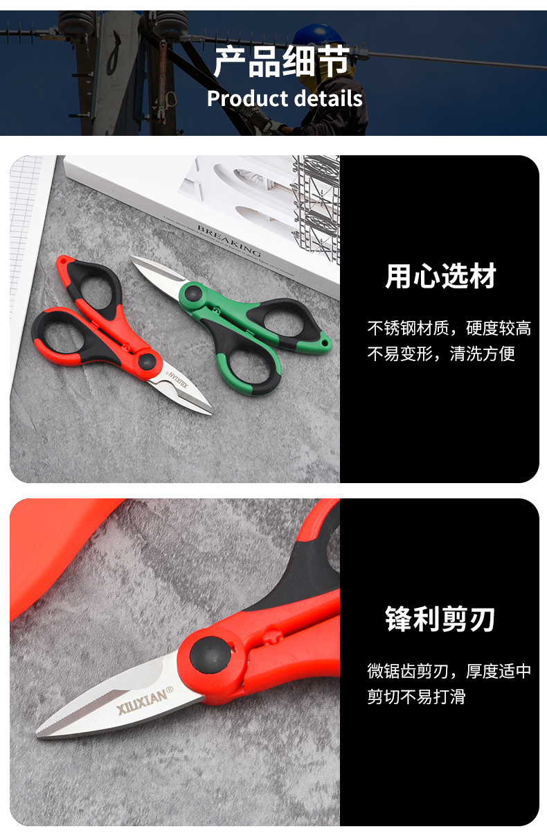 メーカー卸売りステンレス大馬力電気工カット多機能電気はさみpe線釣り糸はさみ釣りはさみ