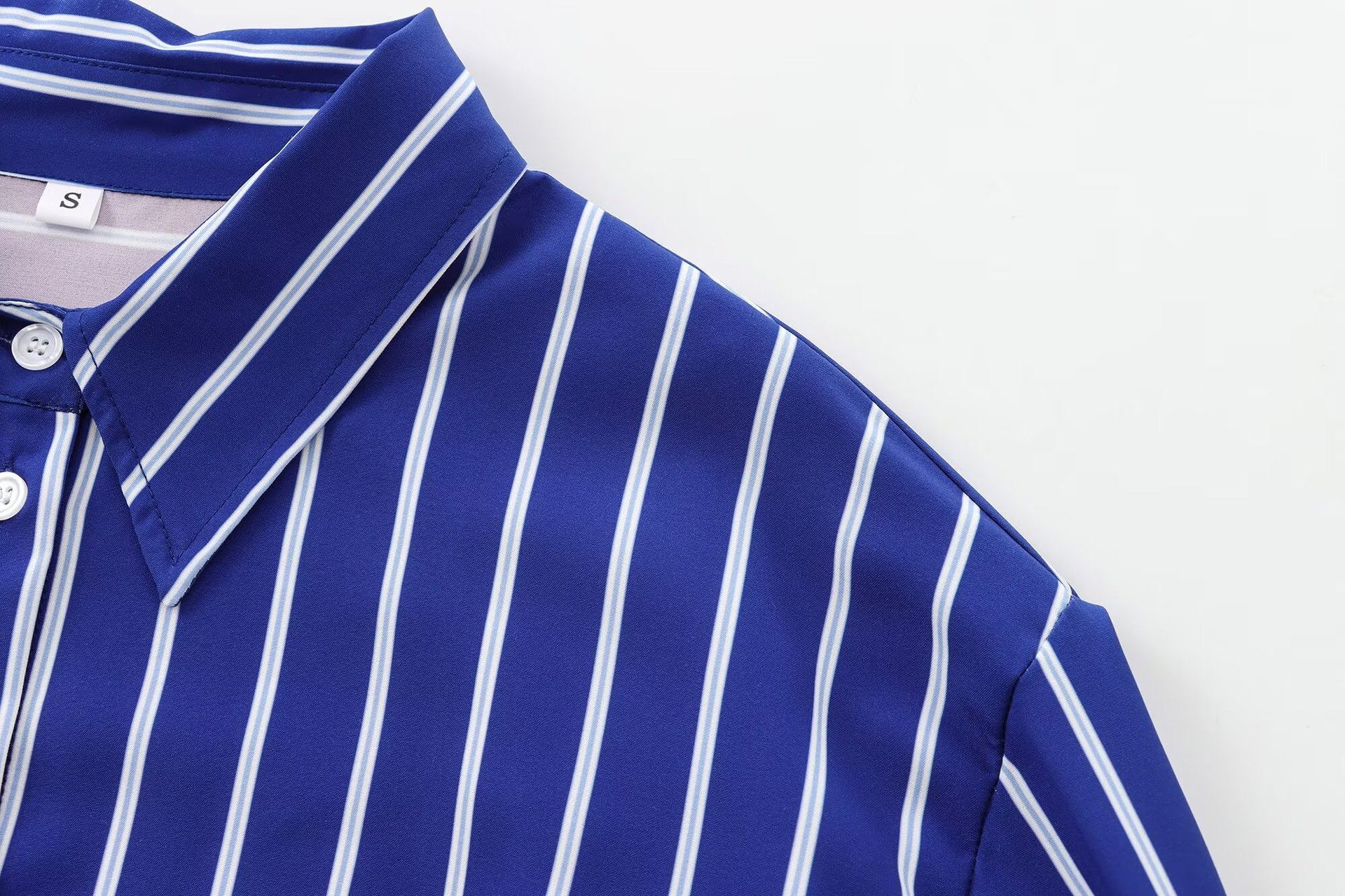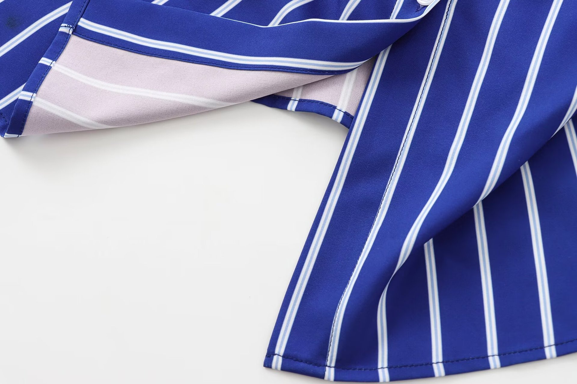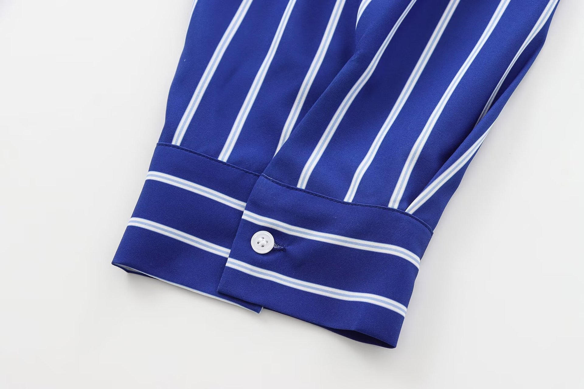 欧美跨境女装2025秋季新款时尚宽松甜美设计感翻领条纹衬衫上衣