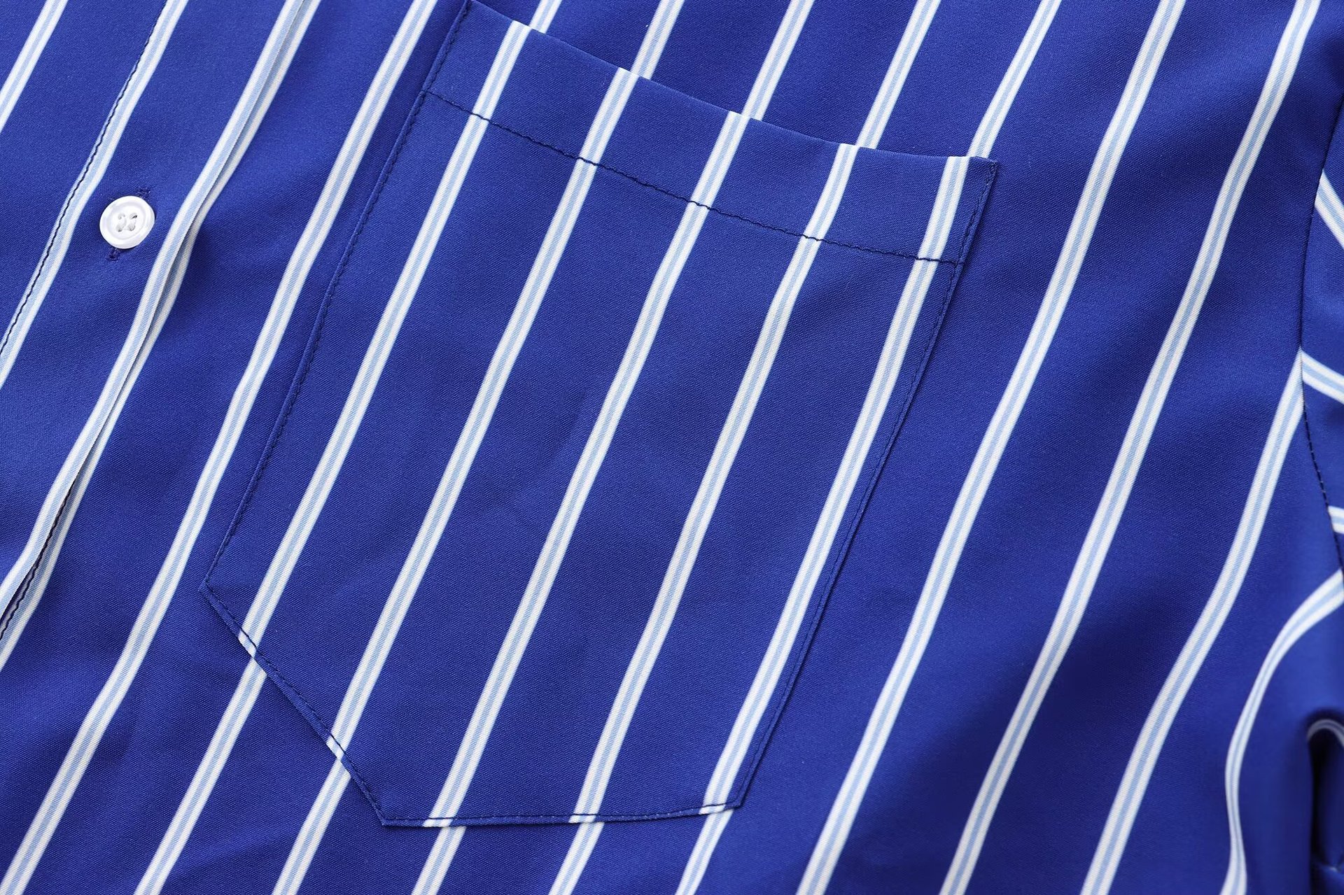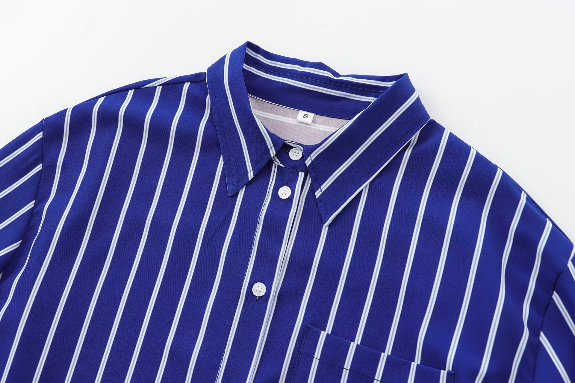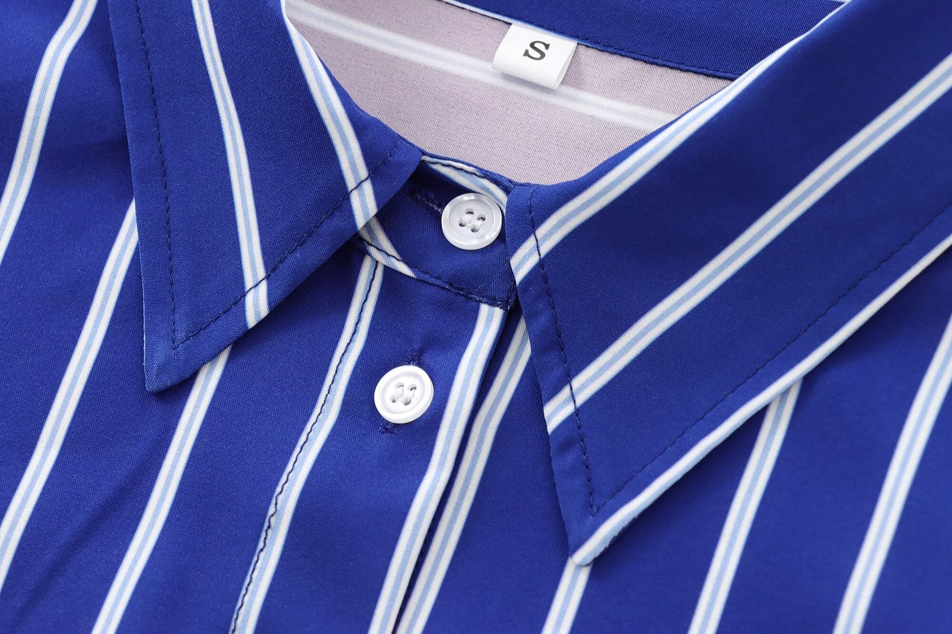 欧美跨境女装2025秋季新款时尚宽松甜美设计感翻领条纹衬衫上衣