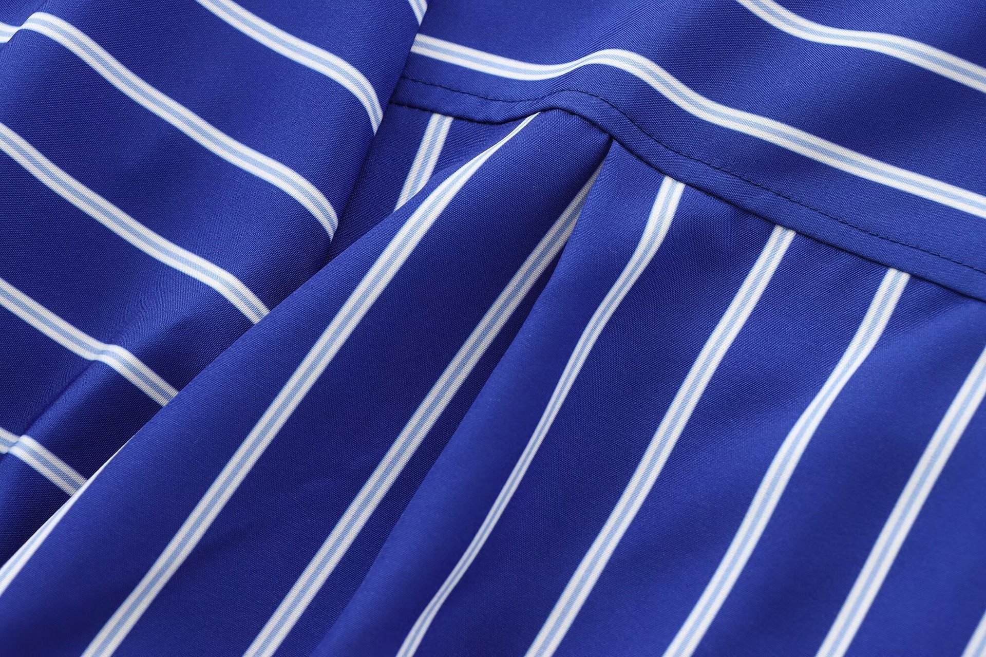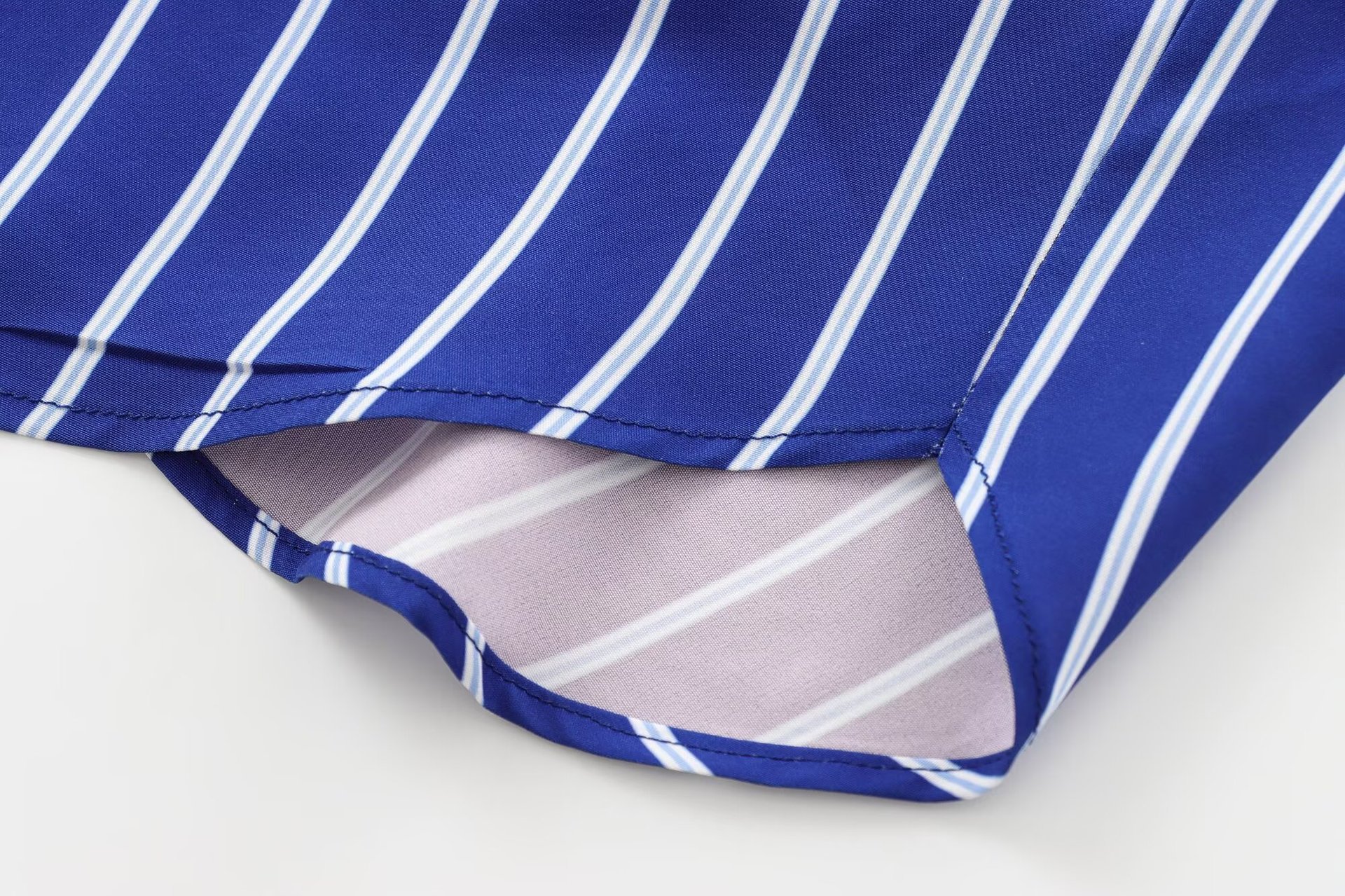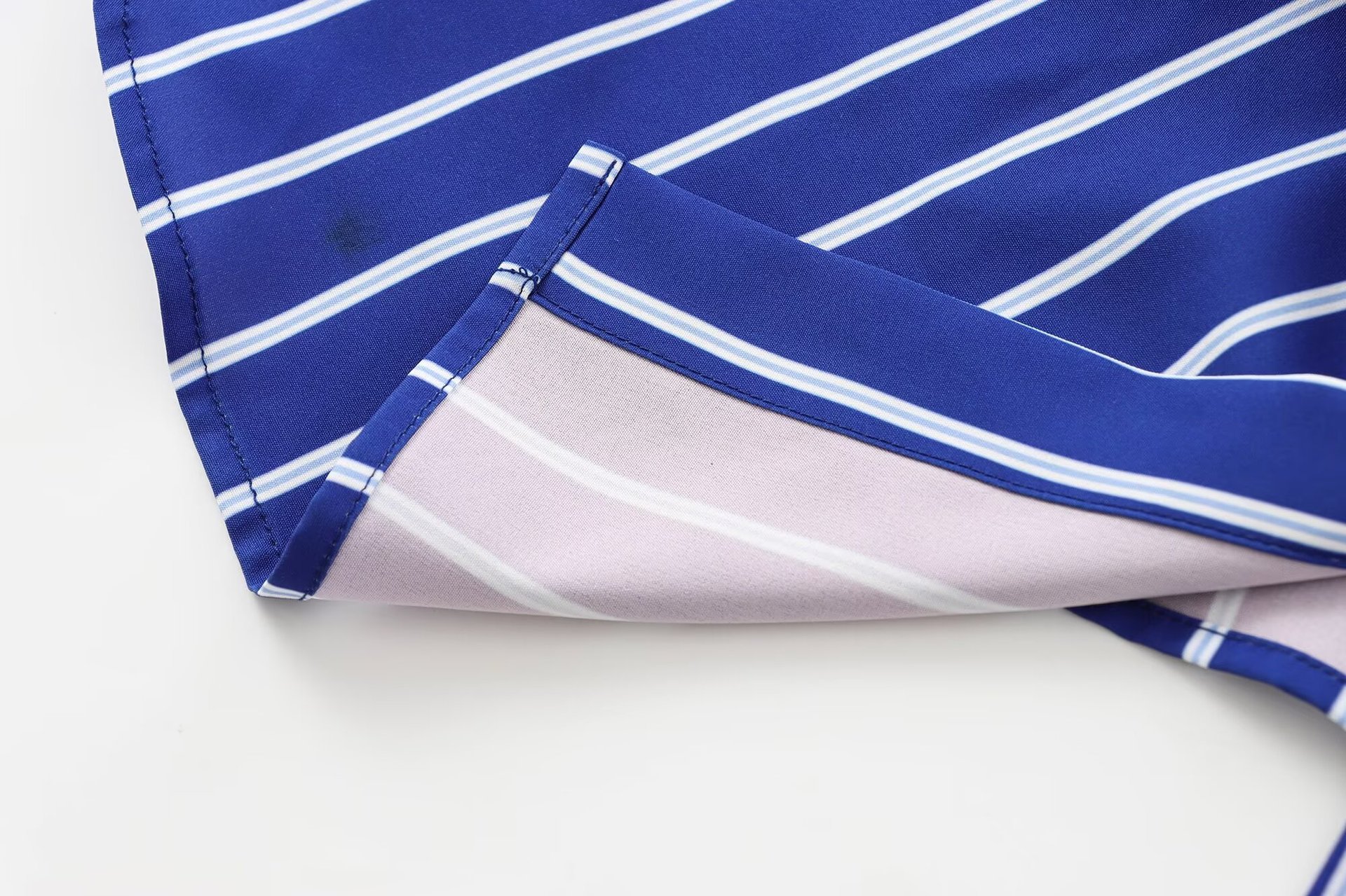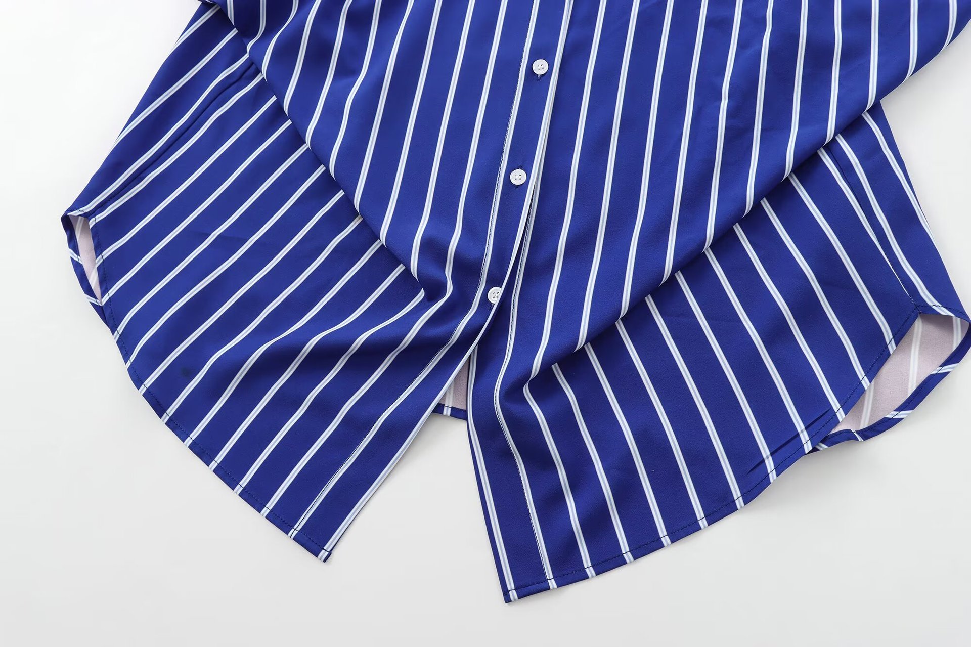 瑞逅跨境欧美条纹长袖衬衫2025秋季亚马逊外贸气质绑带衬衣开衫女