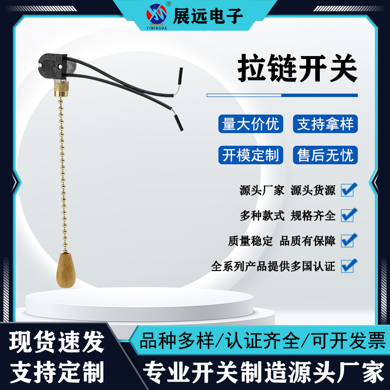 ファン吊り扇ランプケーブルスイッチ首振り2段調速スイッチ美規ul認証ファスナーロープスイッチビーズチェーン