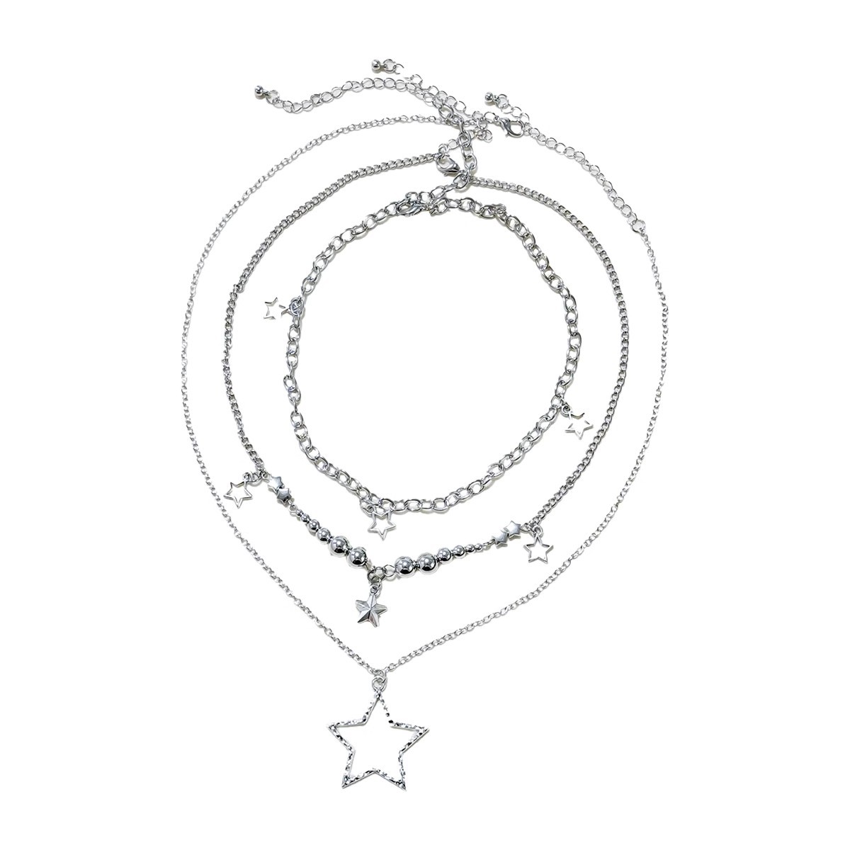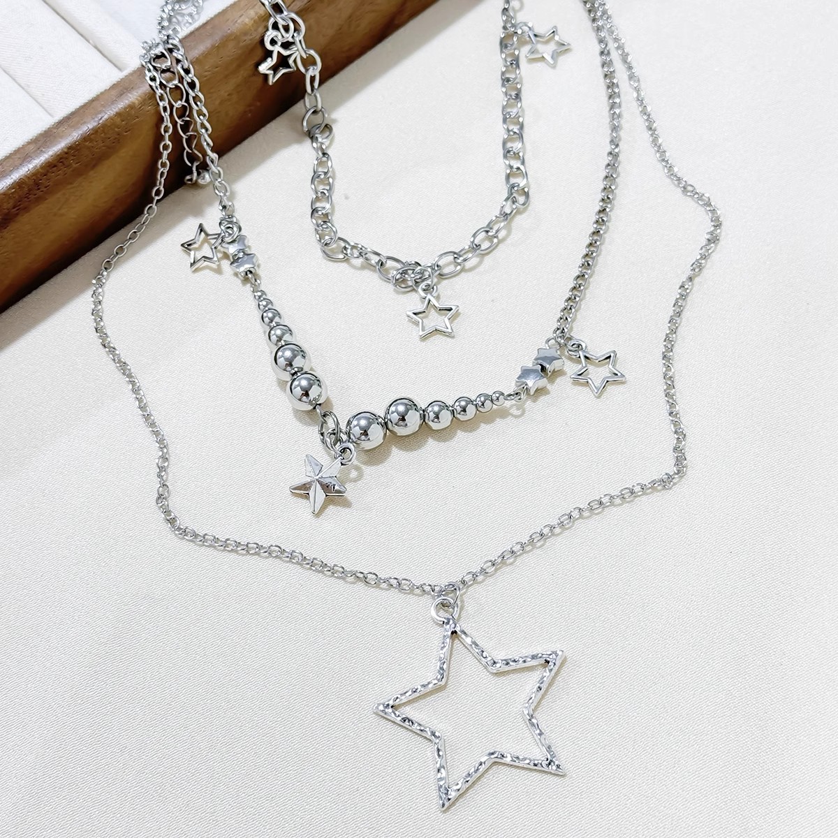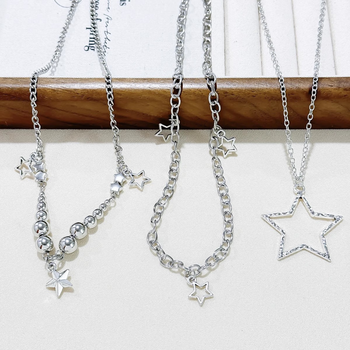 欧米風クロスボーダーヒップホップセクシーガール風星型ペンダントネックレスセット おしゃれなCCB丸玉メタルチェーンネックレス女性用