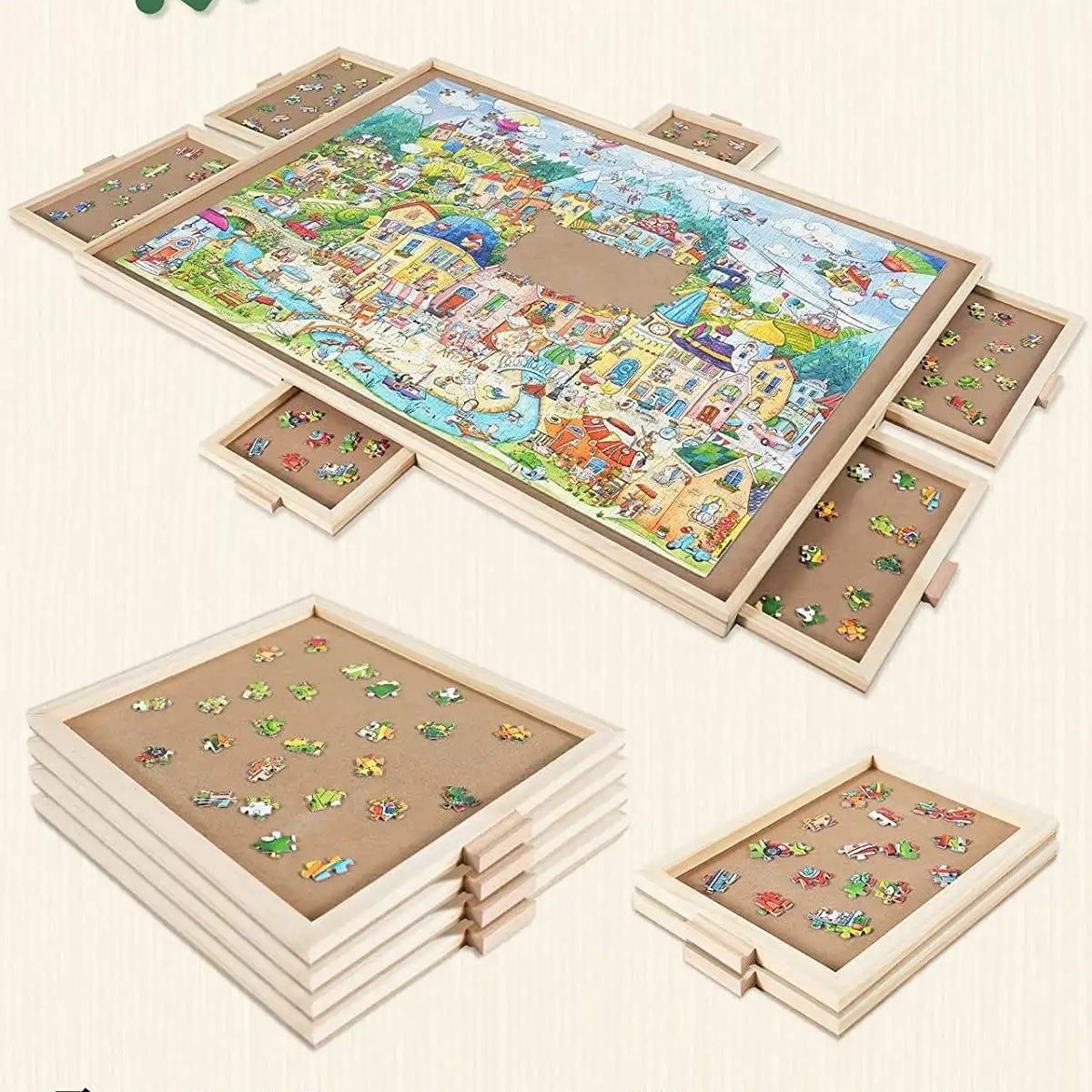 回転可能な木製パズルテーブル引き出し付き分類パズル収納板家庭用成人児童怠け者パズルテーブル