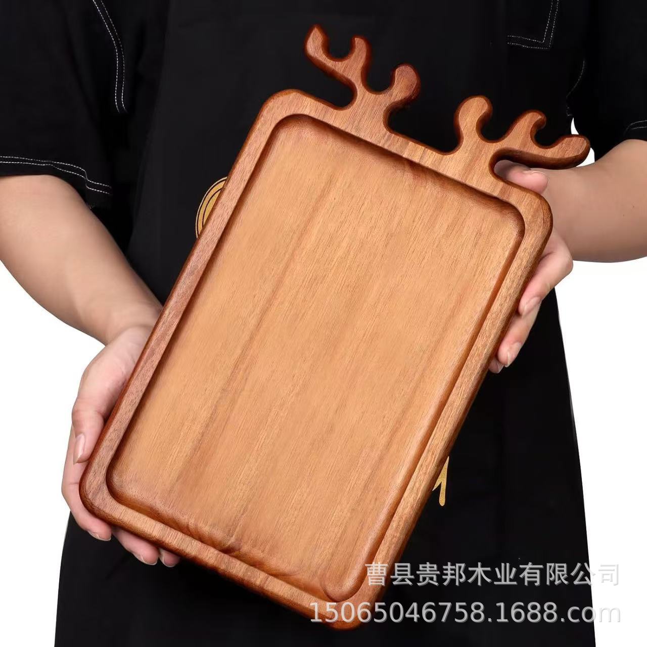 木の鹿の角の形のトレーのレストランの集まりの熟食のステーキの果物のトレーの祝日の雰囲気のクリスマスのデザートの皿