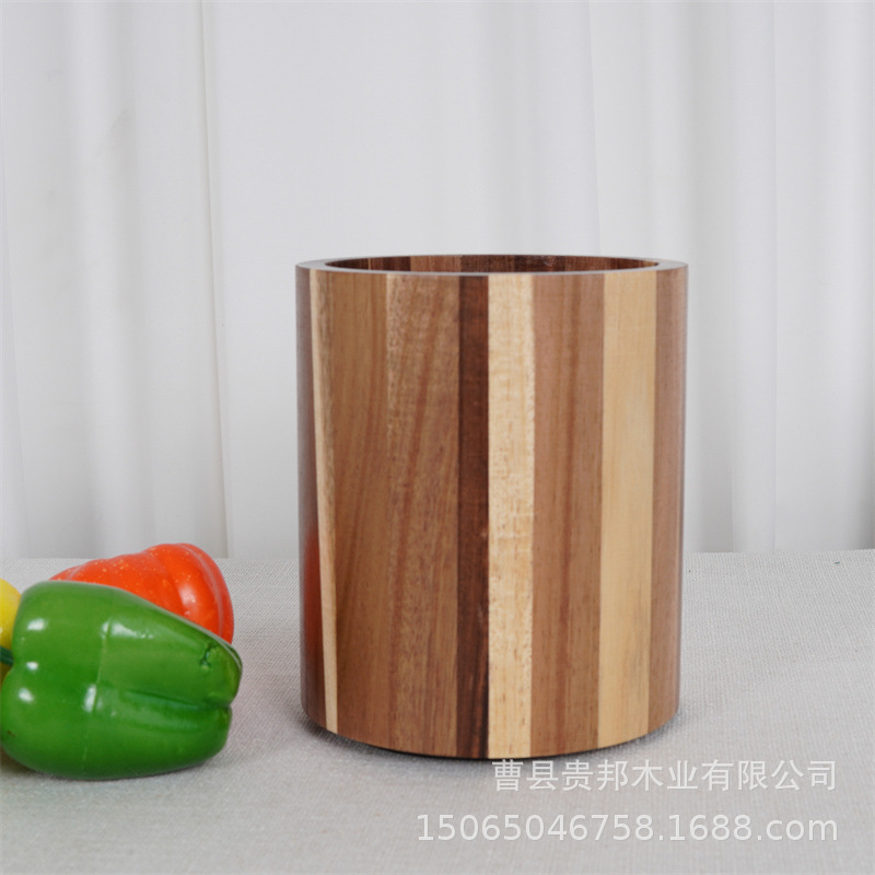 家庭用キッチンカウンター用鍋つかみ・スプーン収納ボックス、回転式食器整理ボックス、木製丸型食器収納筒