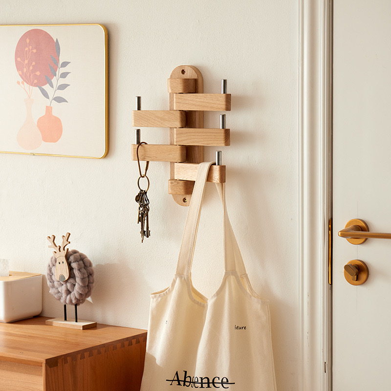 壁掛け式回転木製ラック玄関バッグ傘収納棚寝室壁フックハンガー