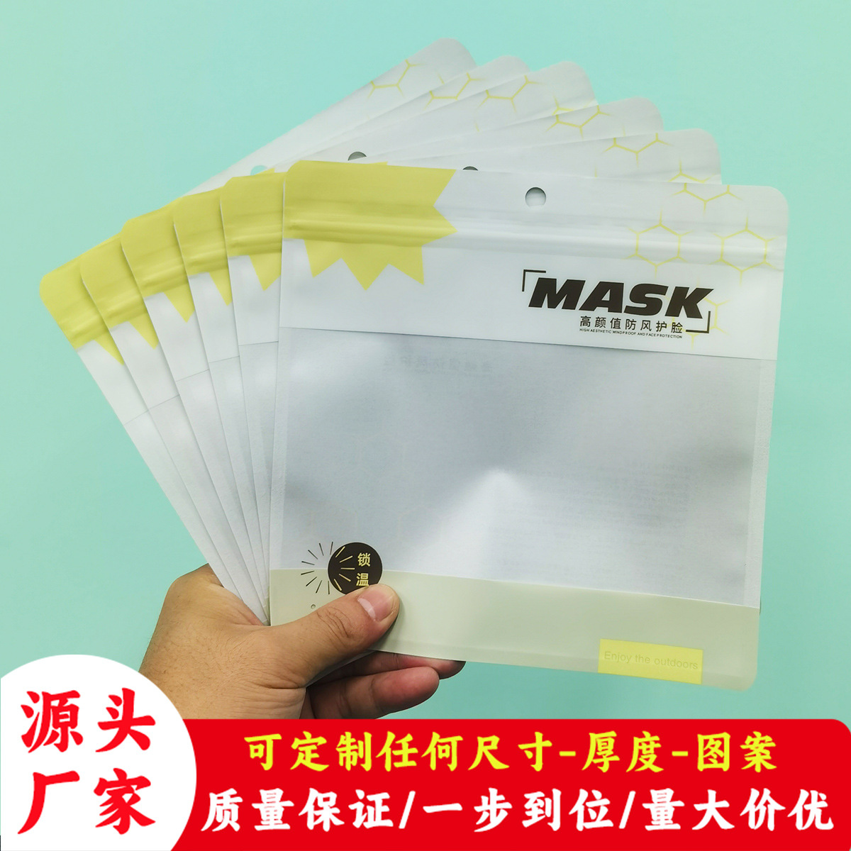 メーカー直販現物マスク三辺封複合包装袋アルファベット冬金起爆保温マスク包装袋