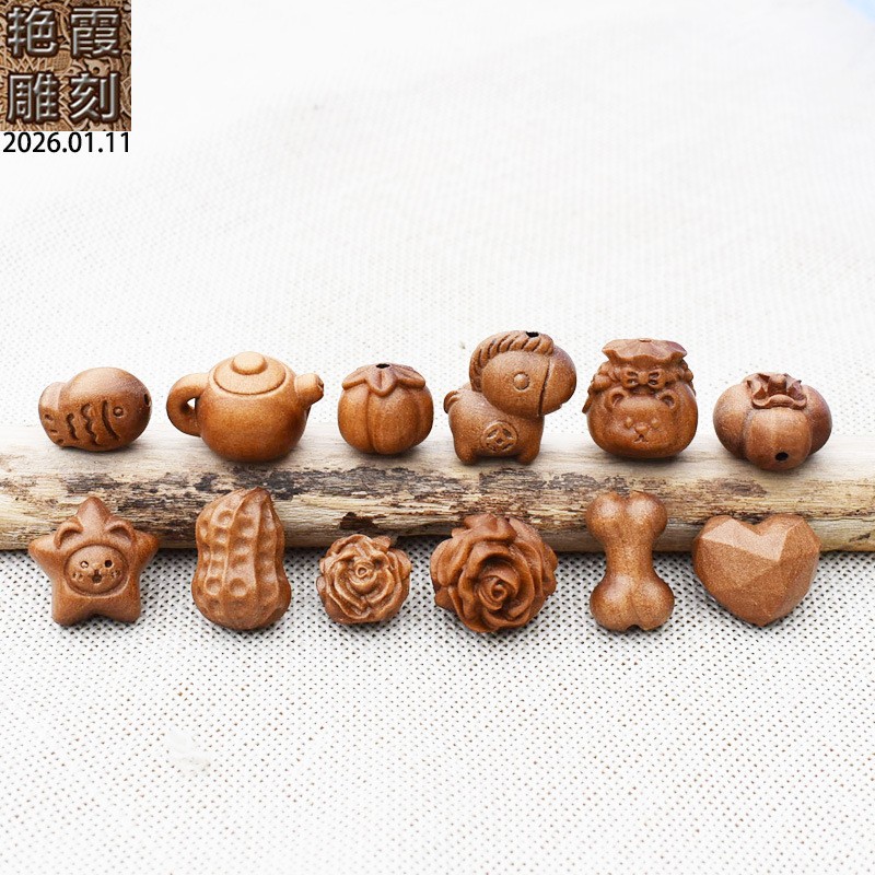 老桃木马上有钱茶壶玫瑰柿子花生小鱼骨头diy配件饰品吊坠钥匙扣