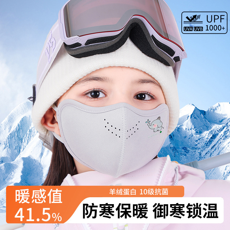 10A抗菌澳绒儿童保暖口罩2025秋冬防寒可爱卡通羊绒蛋白防晒面罩
