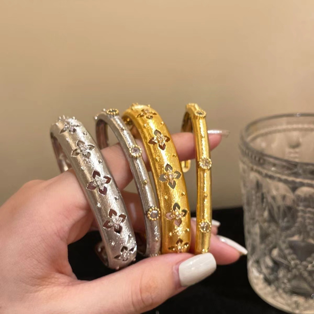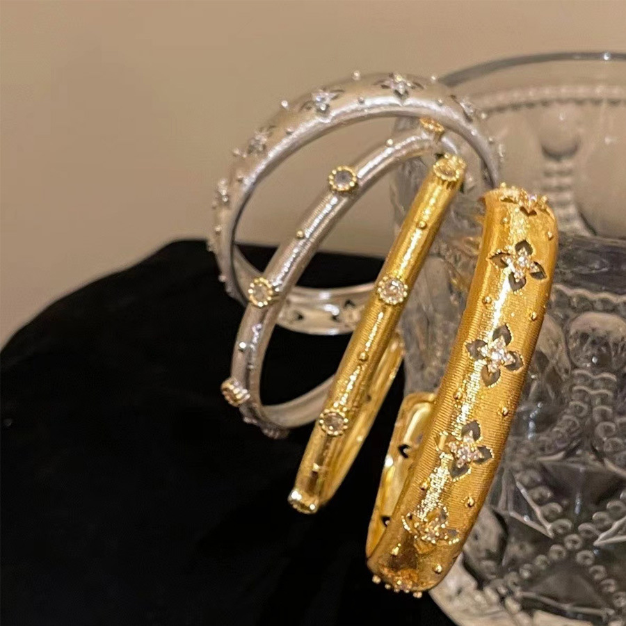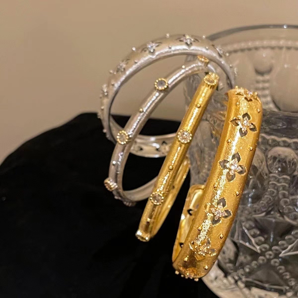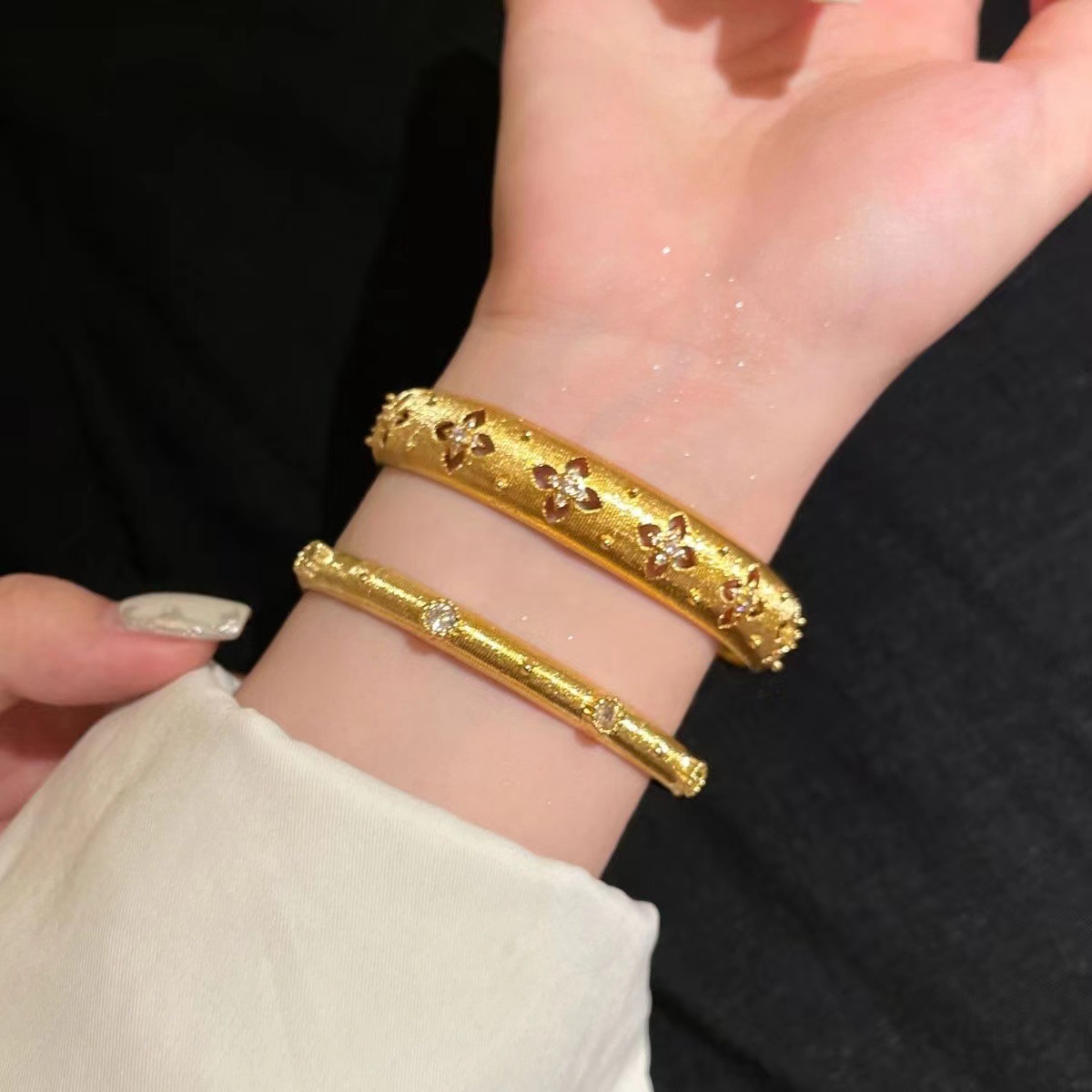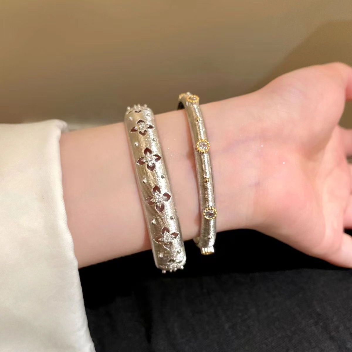 拉丝手镯开口意大利织金色手链轻奢高级质感叠戴闪钻复古精致手环