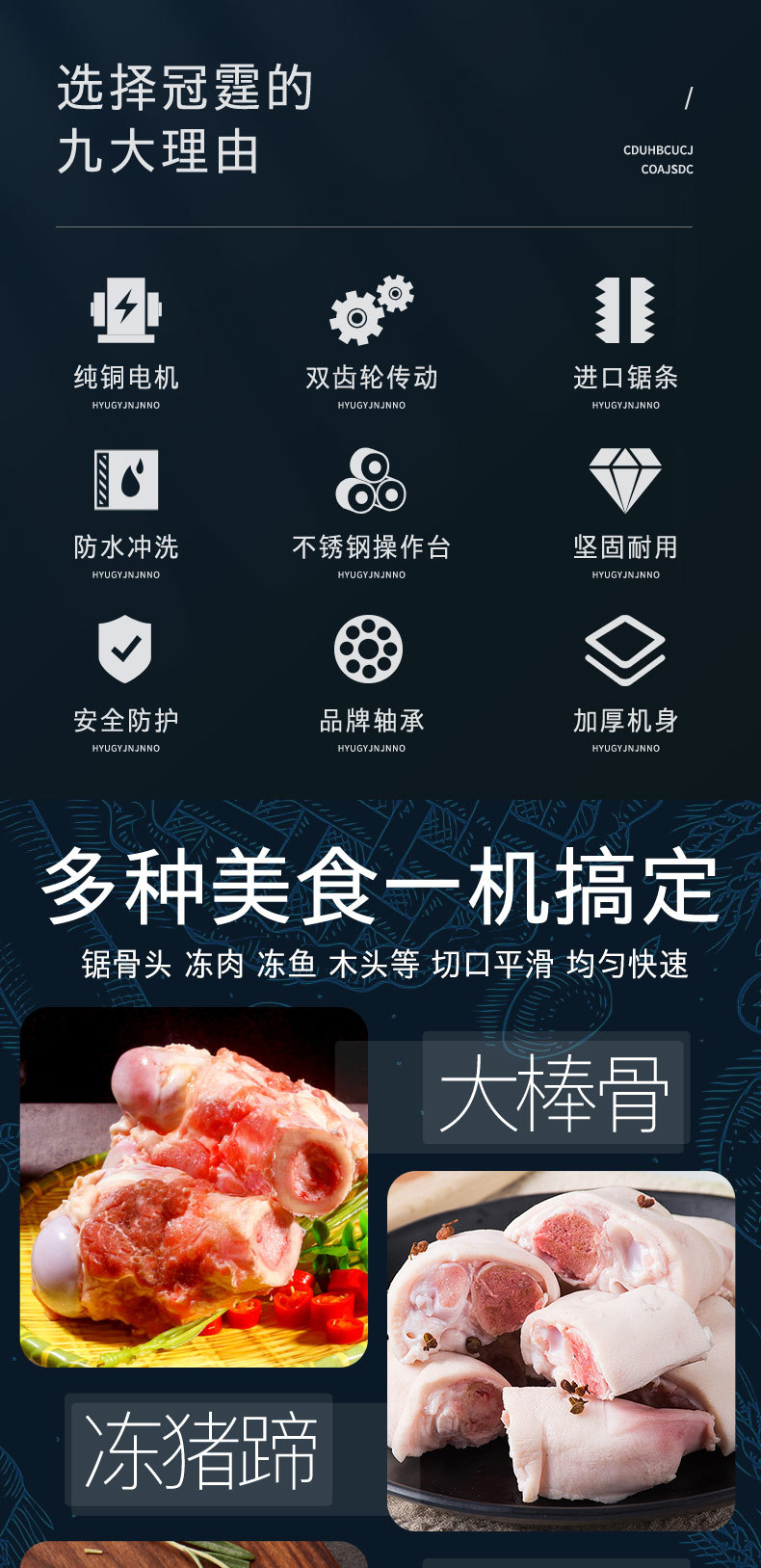 冠霆鋸骨機商用電動骨切り機大型デスクトップ冷凍肉切断機豚蹄排骨冷凍魚家庭用
