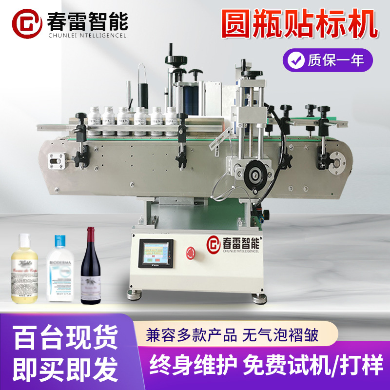 Chunlei インテリジェント小型デスクトップラウンドボトルラベリングマシンペットボトル全自動粘着ラウンドボトル両面ラベリングマシン