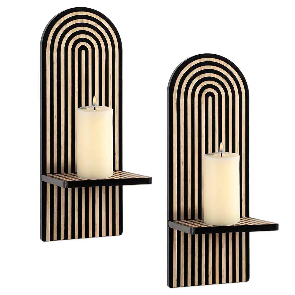 無垢材壁掛け式アロマキャンドルホルダー、黒色装飾壁掛けキャンドルスタンド、木製収納棚、キャンドルホルダー兼収納ラック