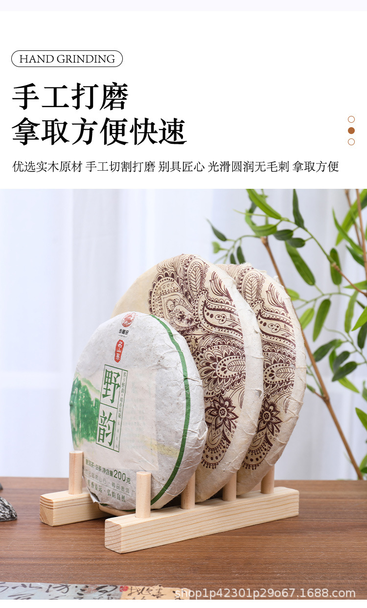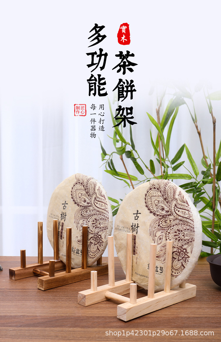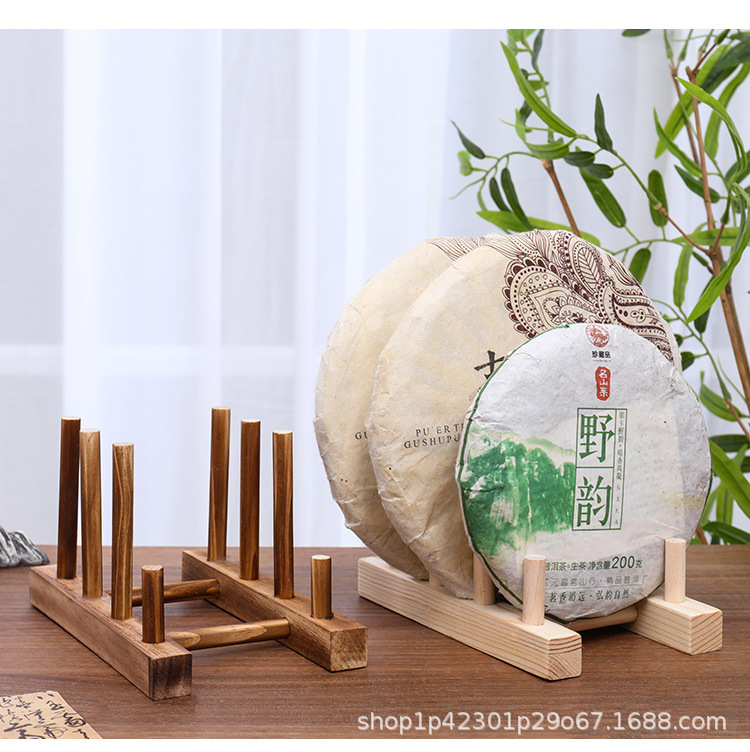 新品プーアル茶餅スタンド、無垢材茶餅ディスプレイスタンド、茶餅棚、レトロな多格子茶餅スタンド、ロゴ印刷可能