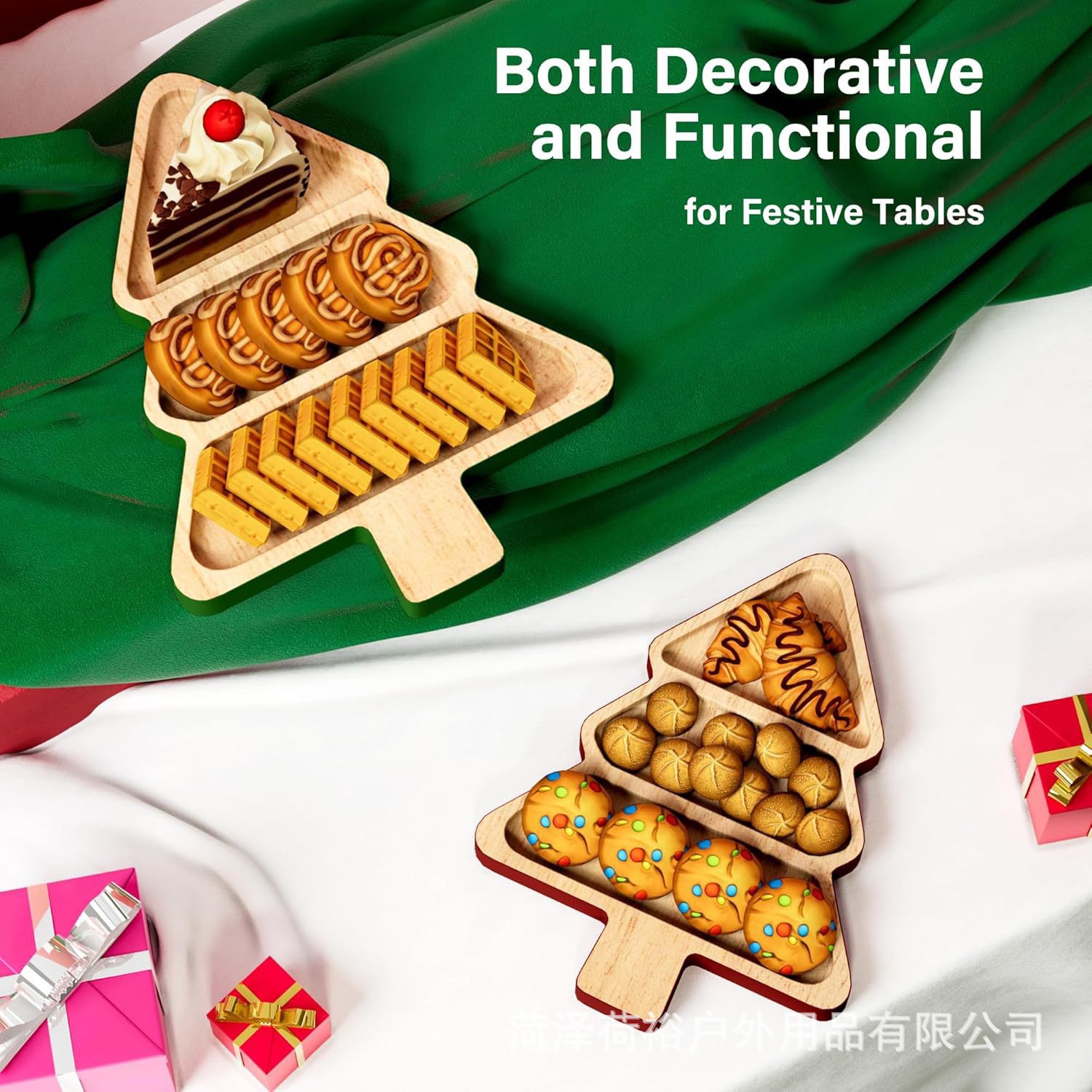 木製トレイ クリスマスツリーの形 カラフルな装飾 スナック デザート フルーツトレイ クリスマス ホリデー パーティー トレイ
