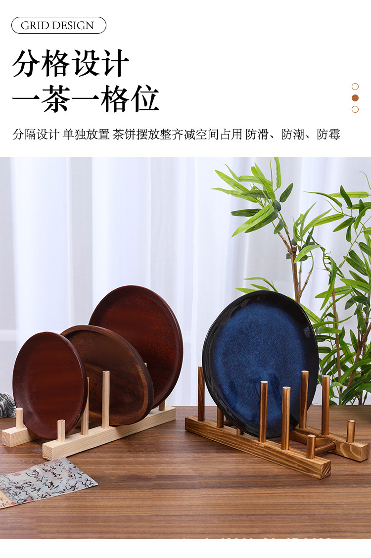 在庫ありの無垢材茶餅棚、仕切り付き茶餅置き棚、家庭用プレート展示棚、木製プーアル茶餅スタンド