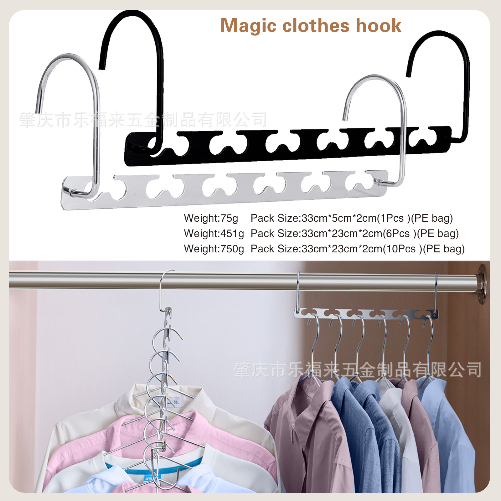 メーカー直販越境マジック金属6穴フックハンガー多機能折りたたみステンレスハンガー現物卸売り