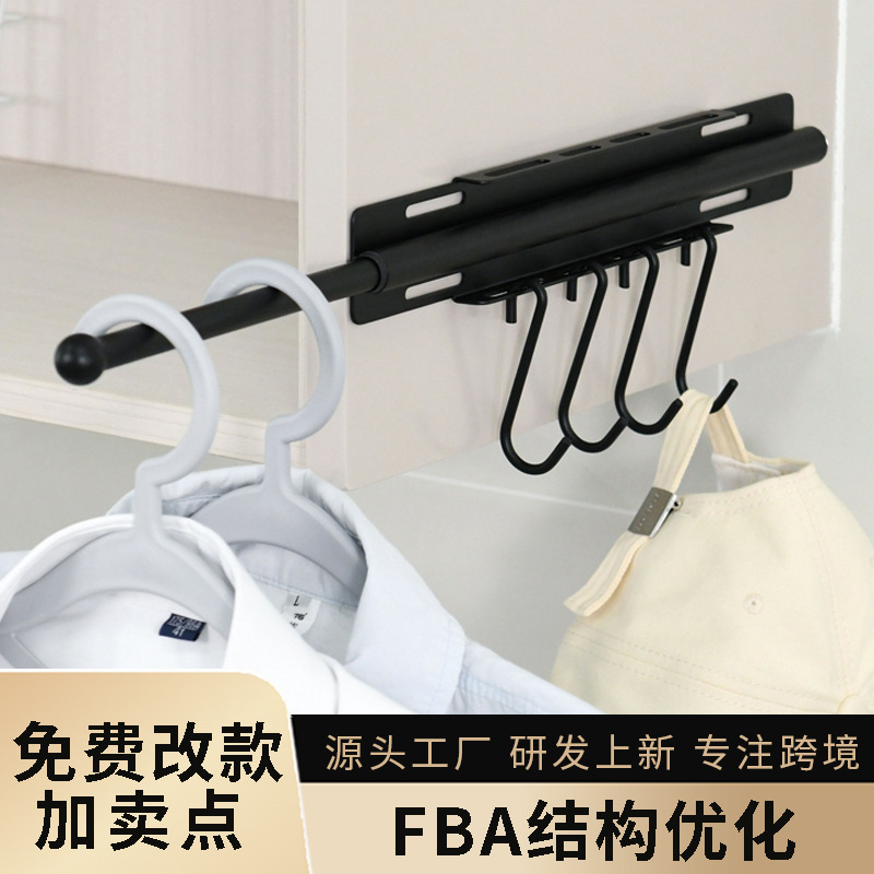跨境壁挂衣柜整理架家用滑出式壁橱整理器家用可伸缩临时挂衣杆