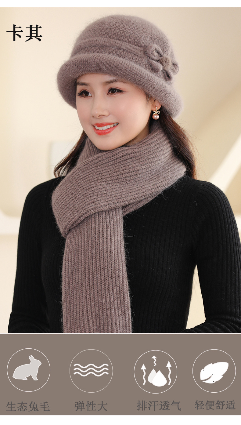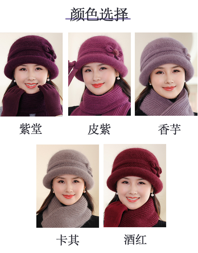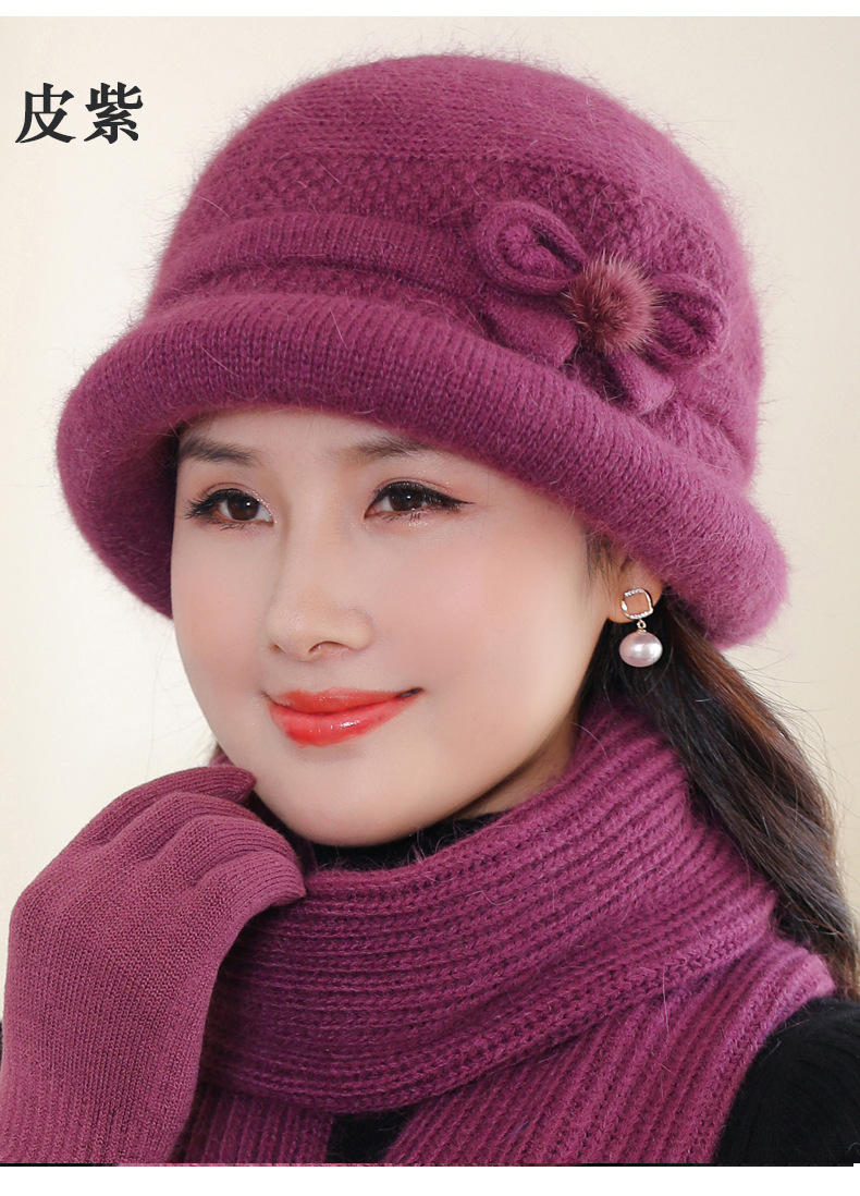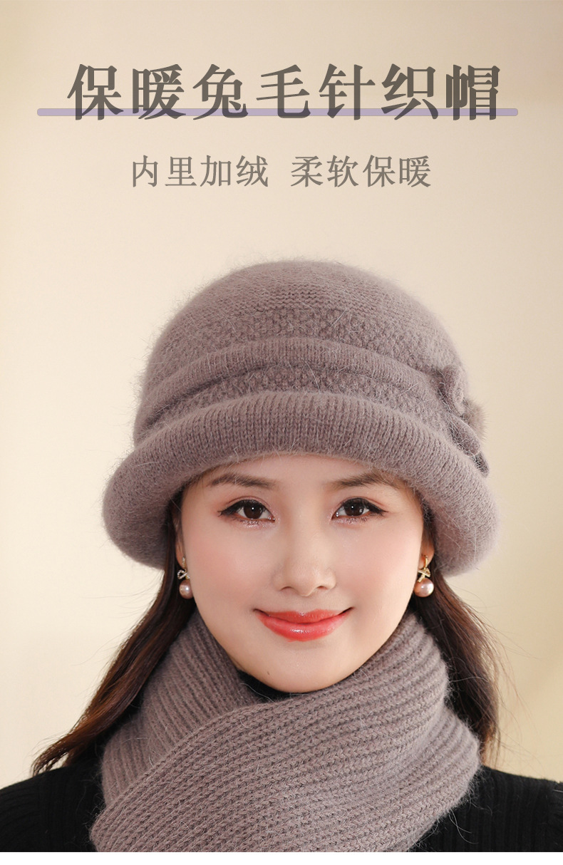 帽子女士秋冬季中年妈妈帽加厚防寒针织毛线帽子老太太奶奶兔毛帽