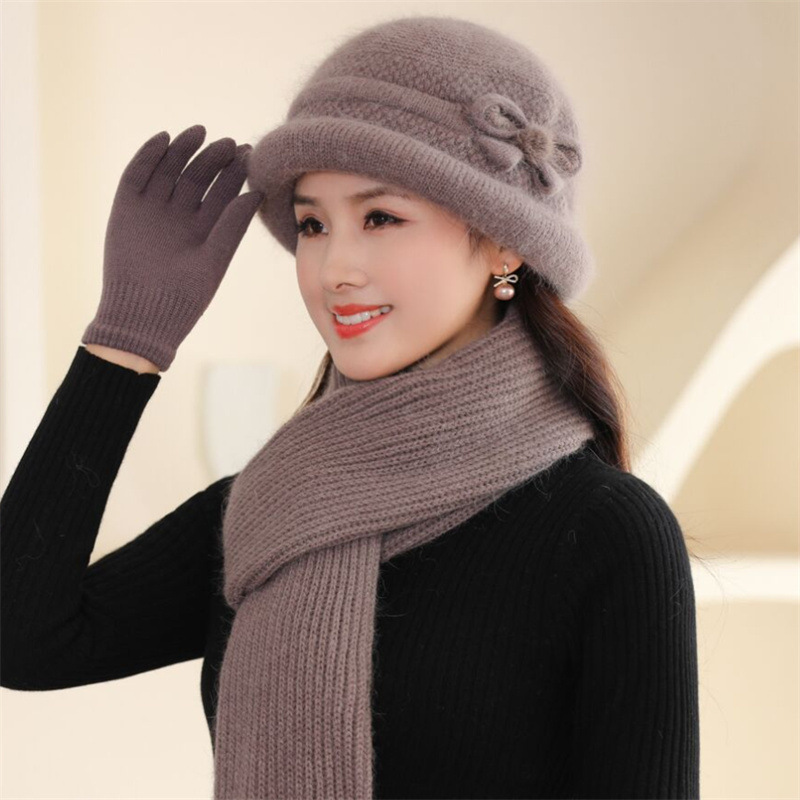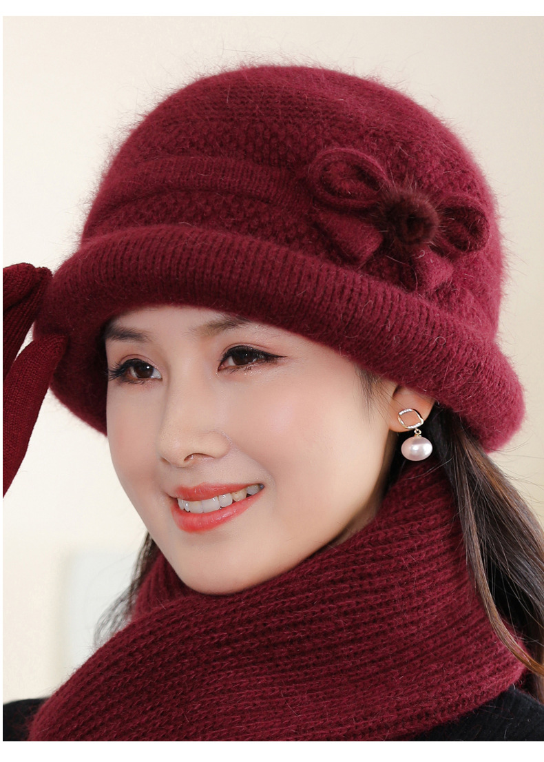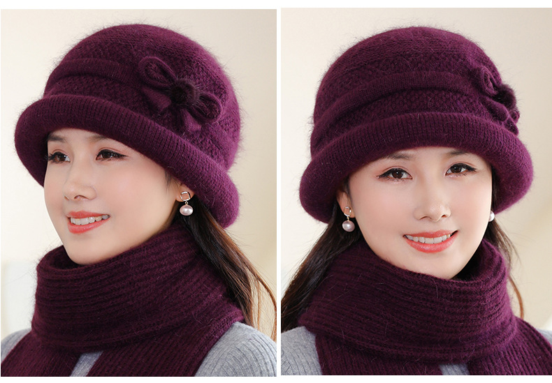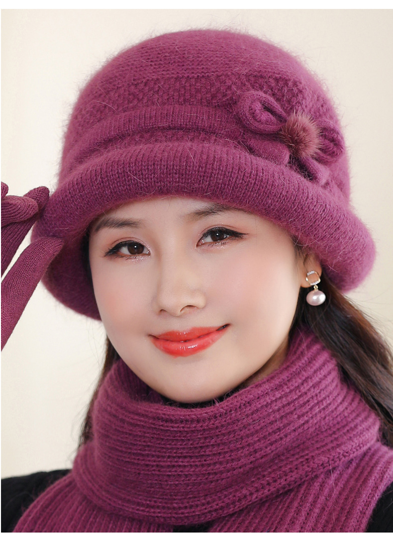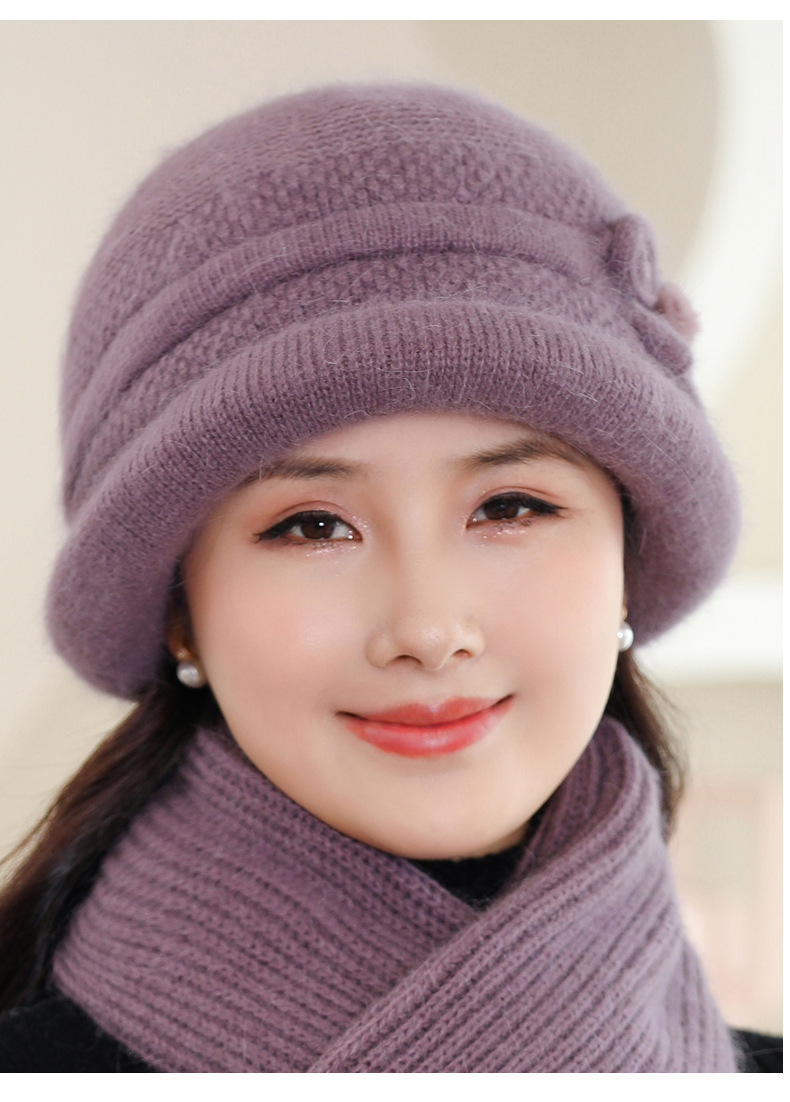帽子女士秋冬季中年妈妈帽加厚防寒针织毛线帽子老太太奶奶兔毛帽