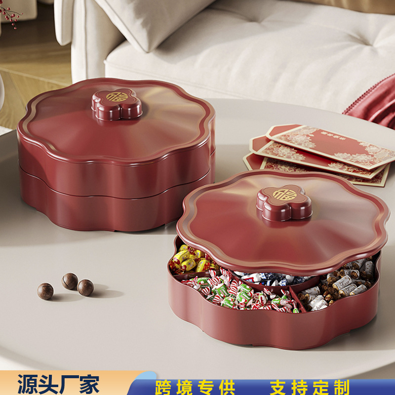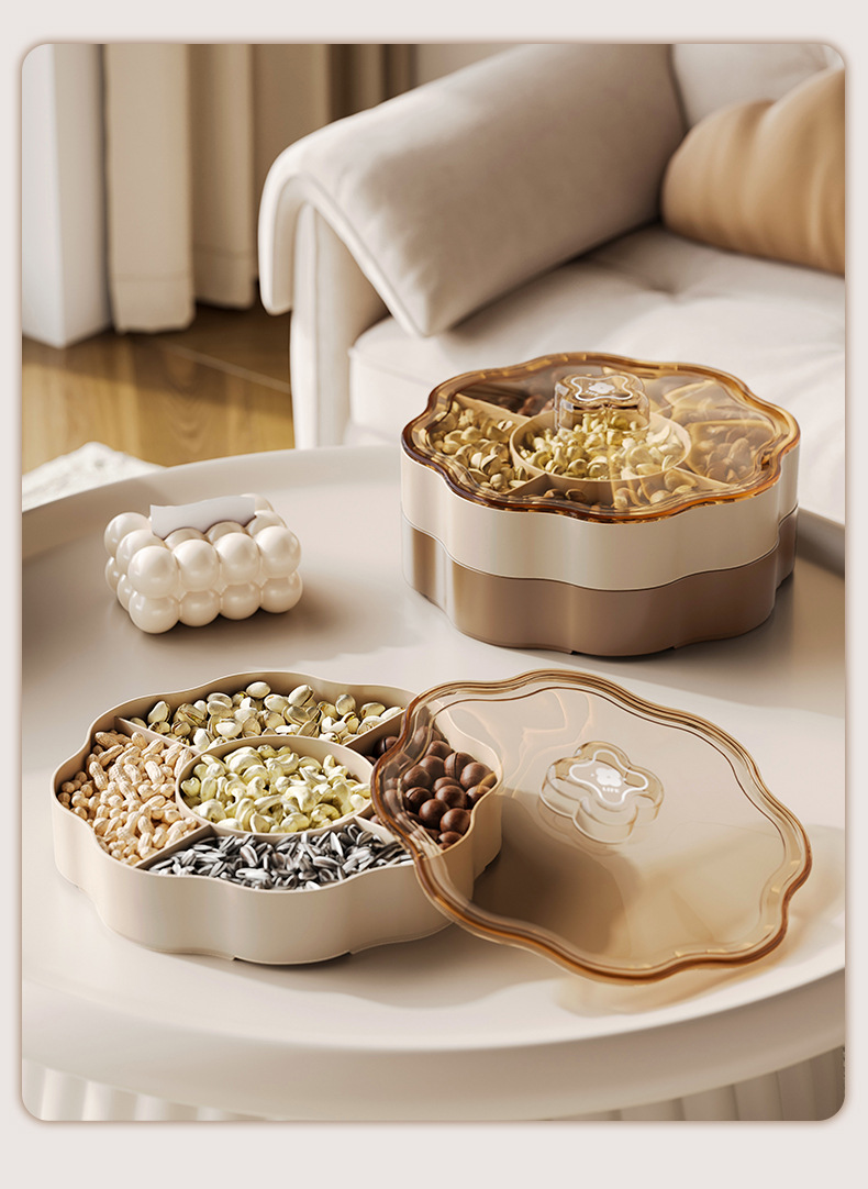分格蓋付き果物皿大型家庭用ナッツスナックキャンディー収納ケースリビングルーム茶何シンプルドライフルーツケース卸売り